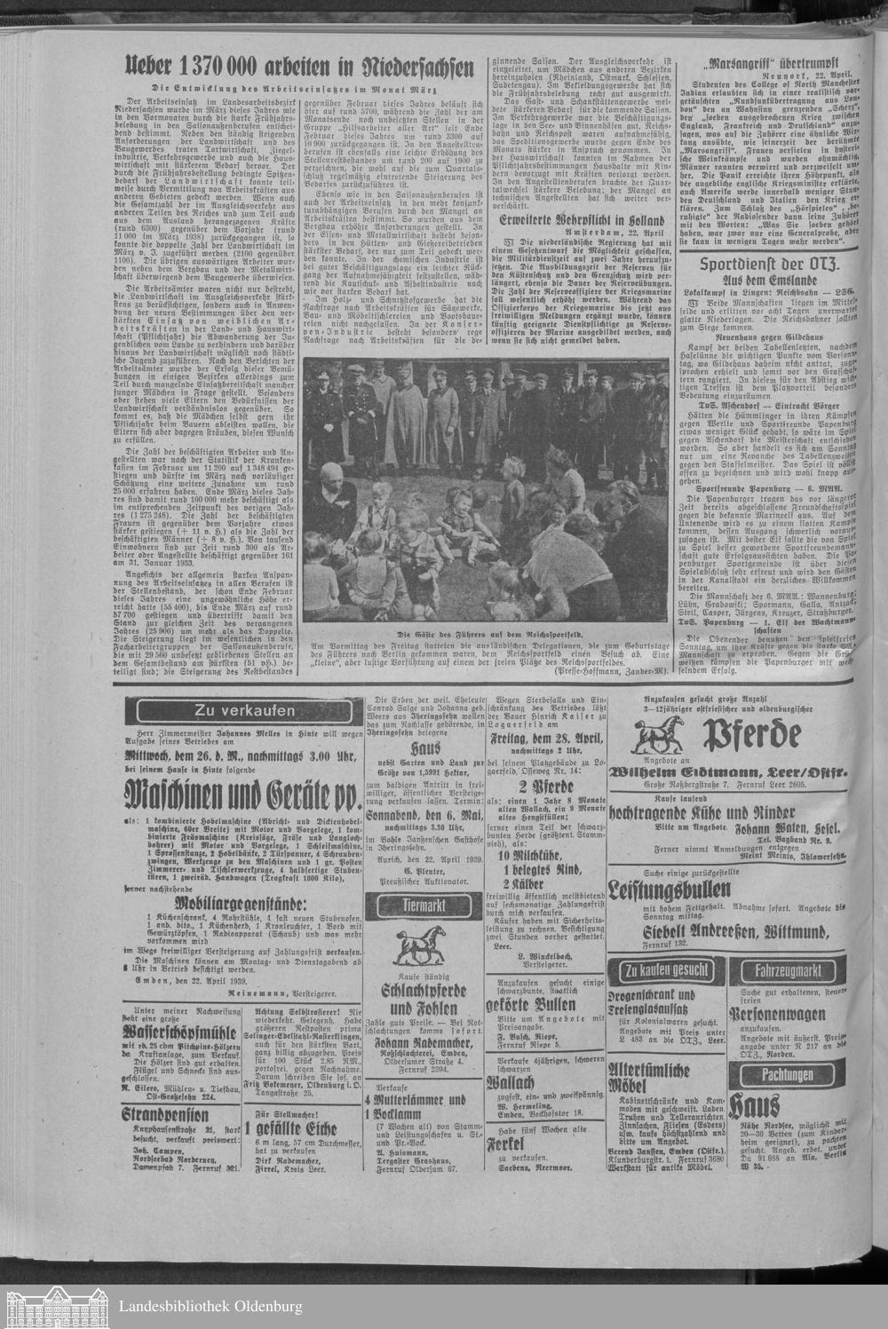 Ostfriesische Tageszeitung. Ausgabe Leer. 1938-1942