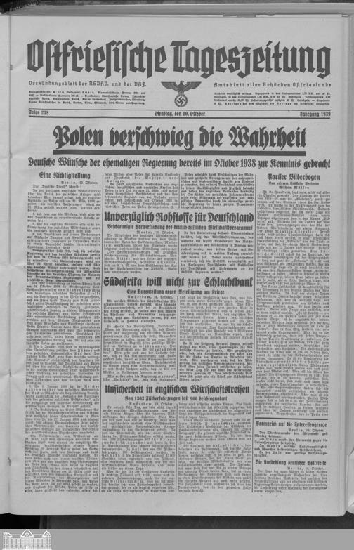 Ostfriesische Tageszeitung. Ausgabe Leer. 1938-1942
