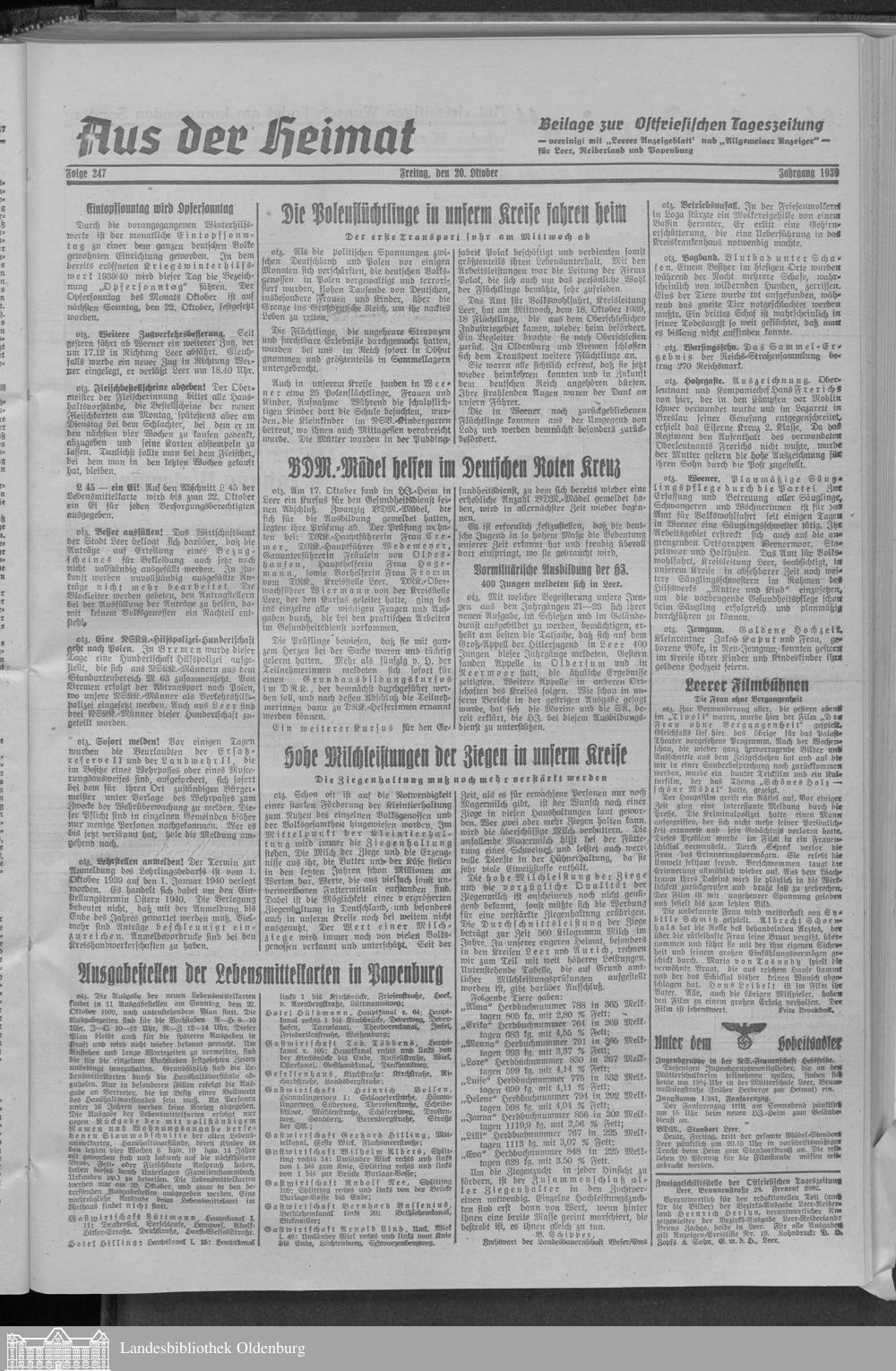 Ostfriesische Tageszeitung. Ausgabe Leer. 1938-1942