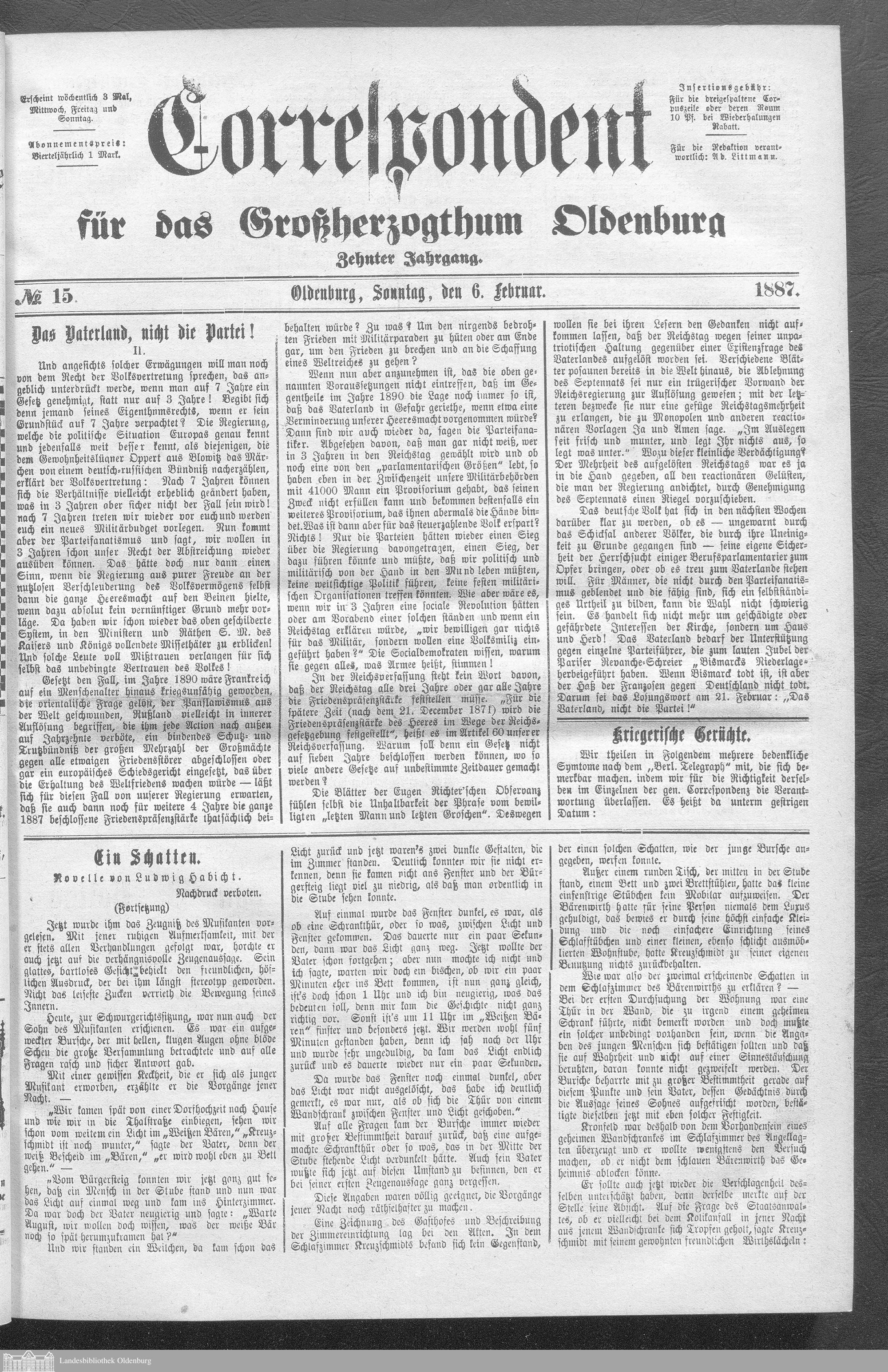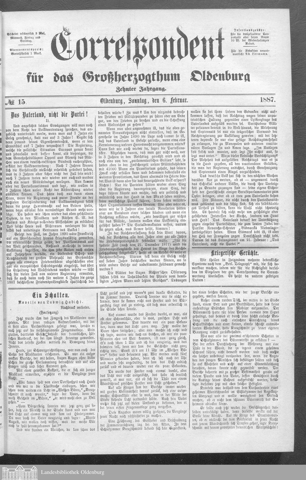 Correspondent für das Großherzogthum Oldenburg....