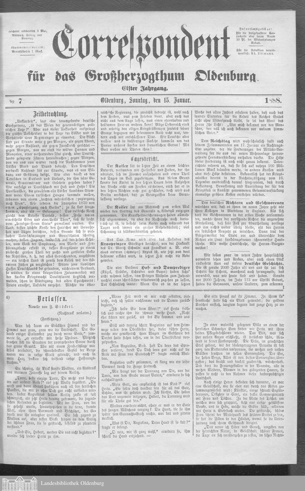 Correspondent für das Großherzogthum Oldenburg....