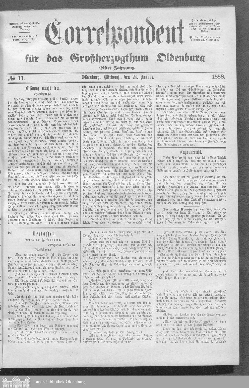 Correspondent für das Großherzogthum Oldenburg....