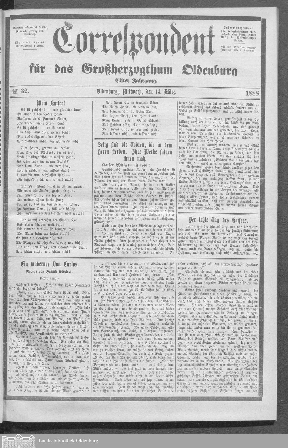 Correspondent für das Großherzogthum Oldenburg. 1878-1890