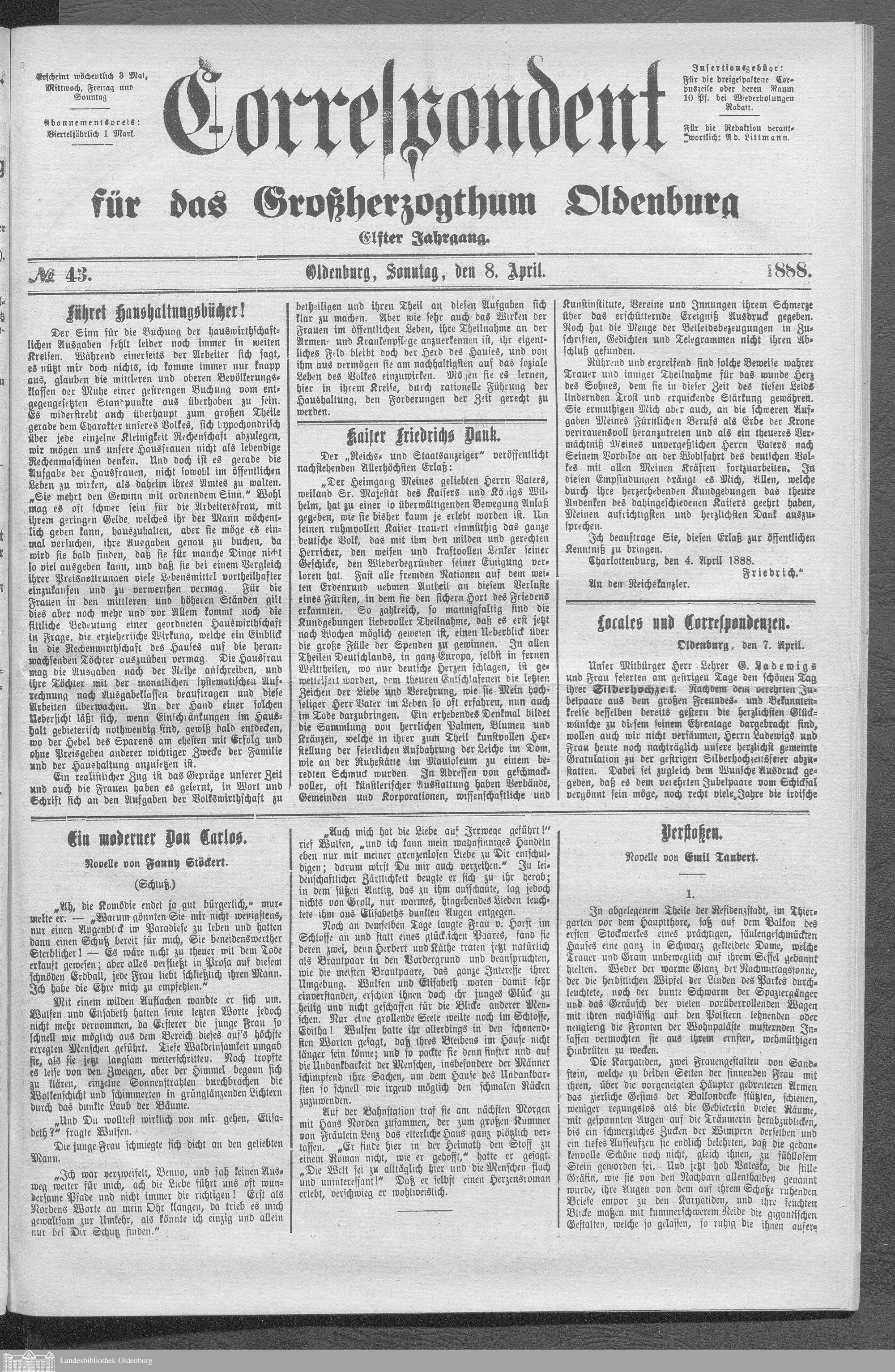 Correspondent für das Großherzogthum Oldenburg....