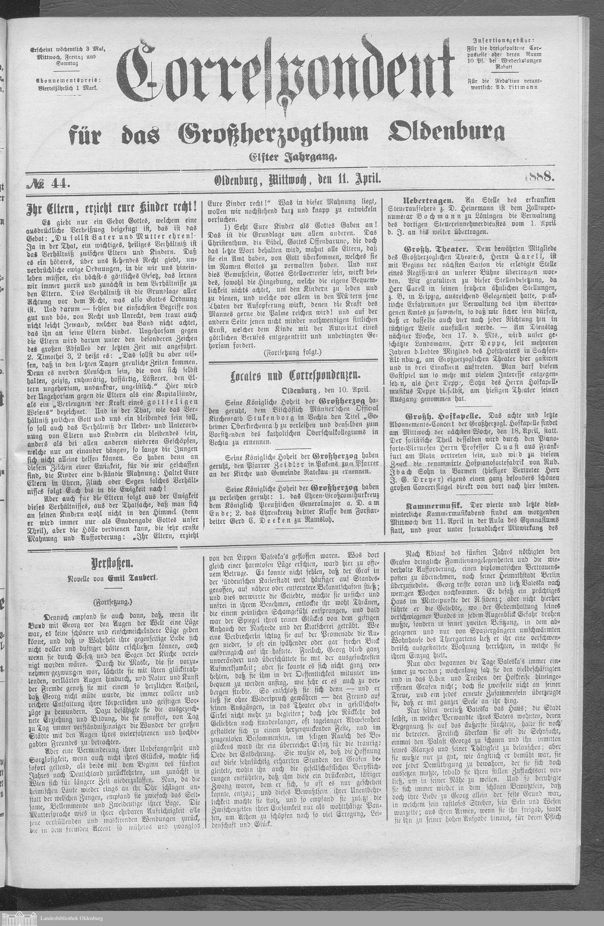 Correspondent für das Großherzogthum Oldenburg....