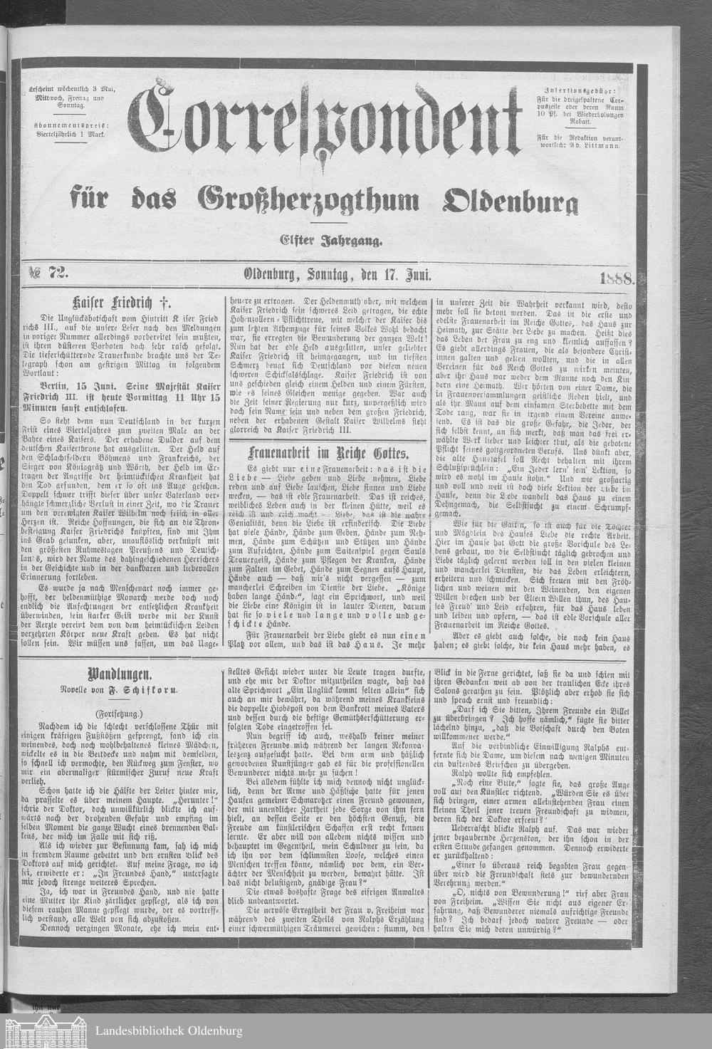 Correspondent für das Großherzogthum Oldenburg....