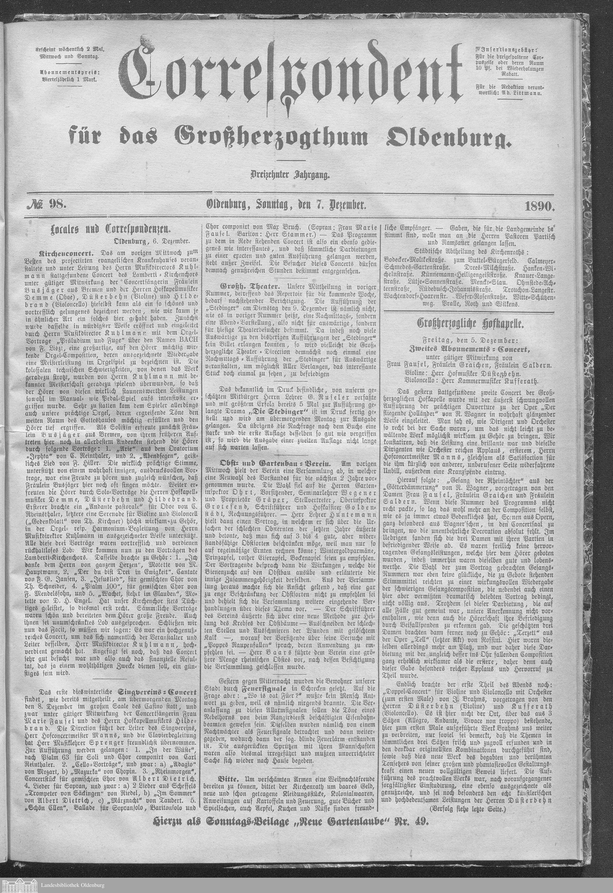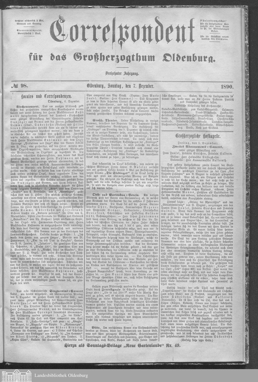 Correspondent für das Großherzogthum Oldenburg....