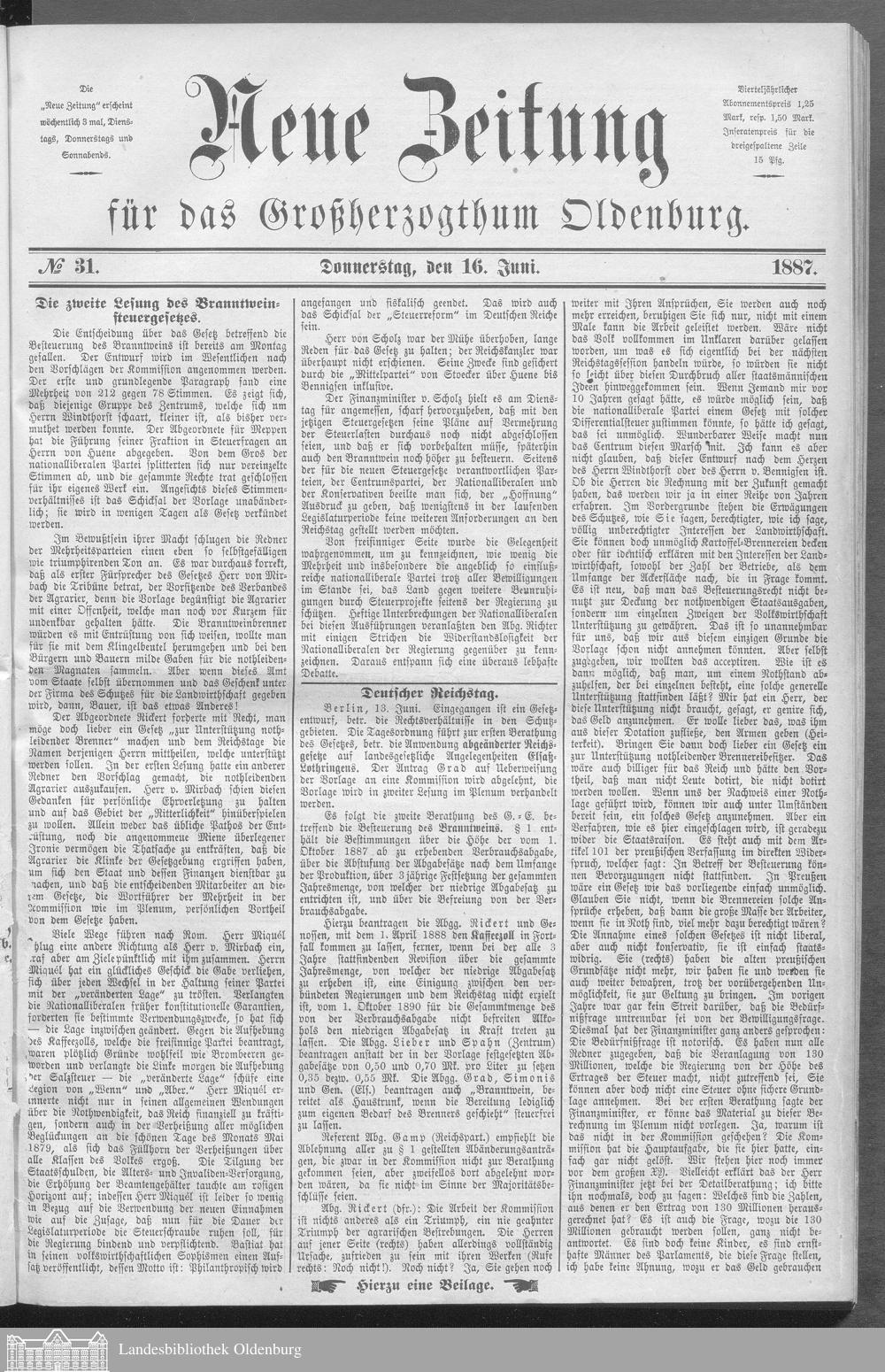 Neue Zeitung für das Großherzogthum Oldenburg. 1887-1890