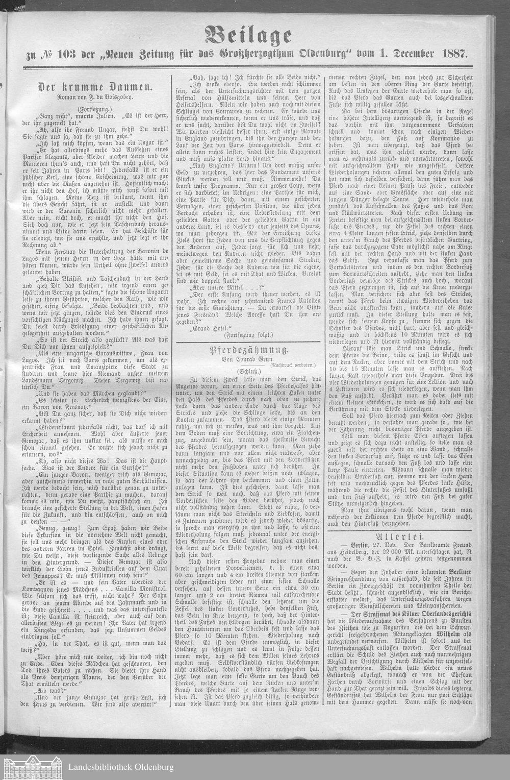 Neue Zeitung für das Großherzogthum Oldenburg. 1887-1890