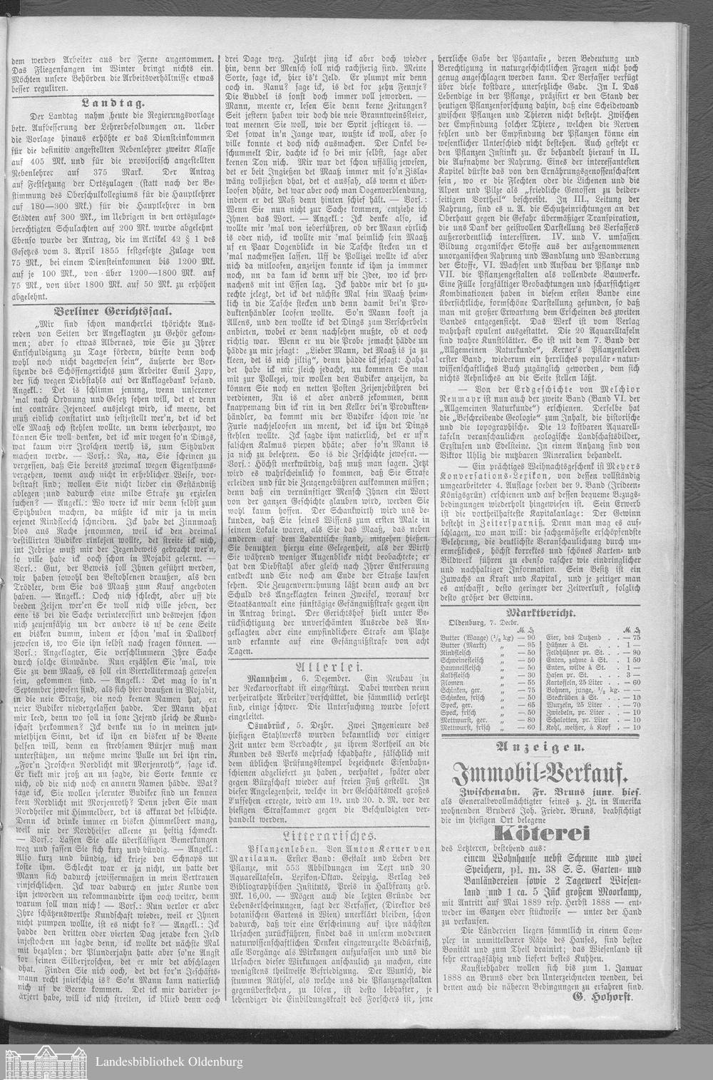 Neue Zeitung für das Großherzogthum Oldenburg. 1887-1890
