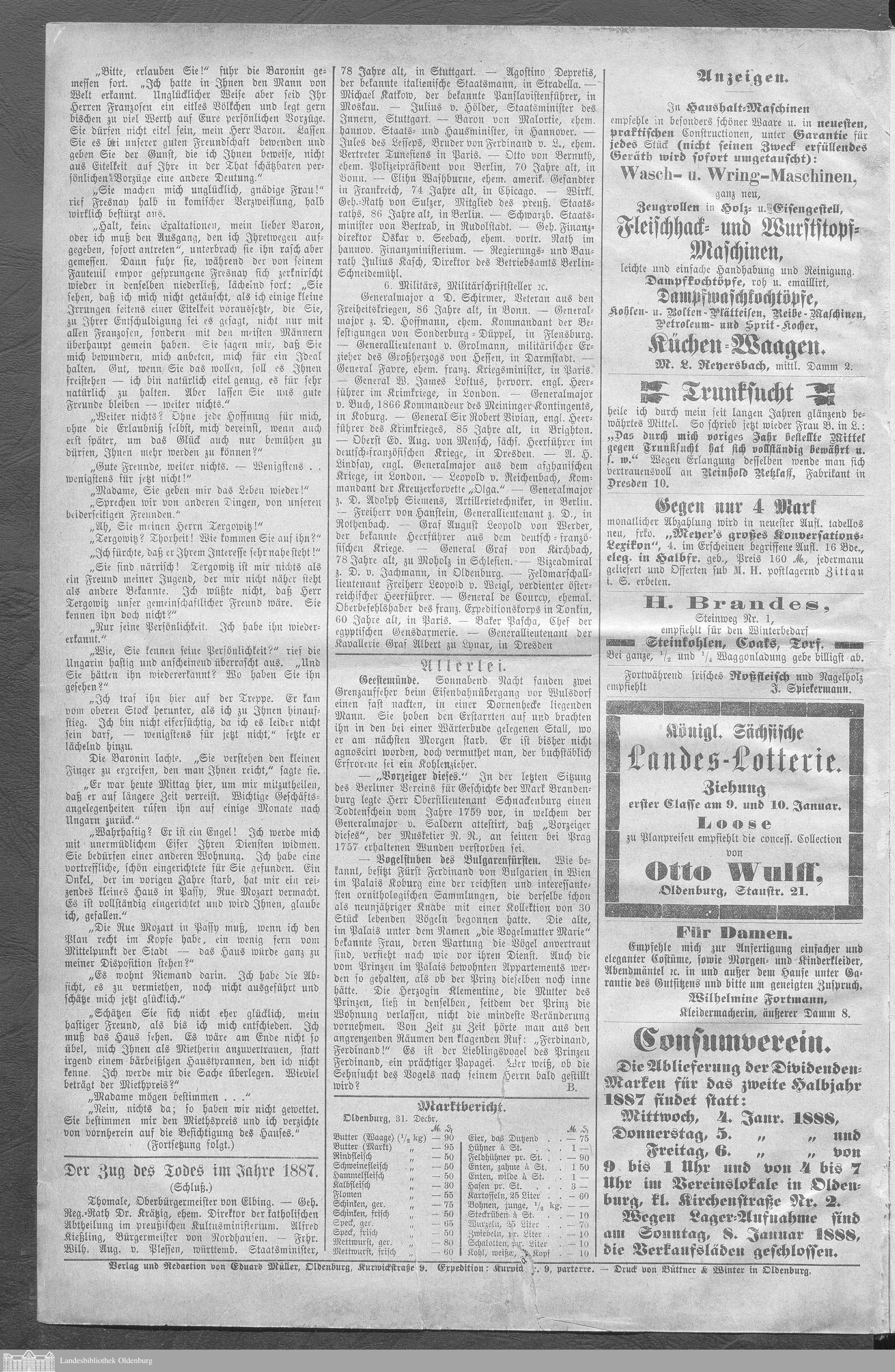 Neue Zeitung für das Großherzogthum Oldenburg. 1887-1890