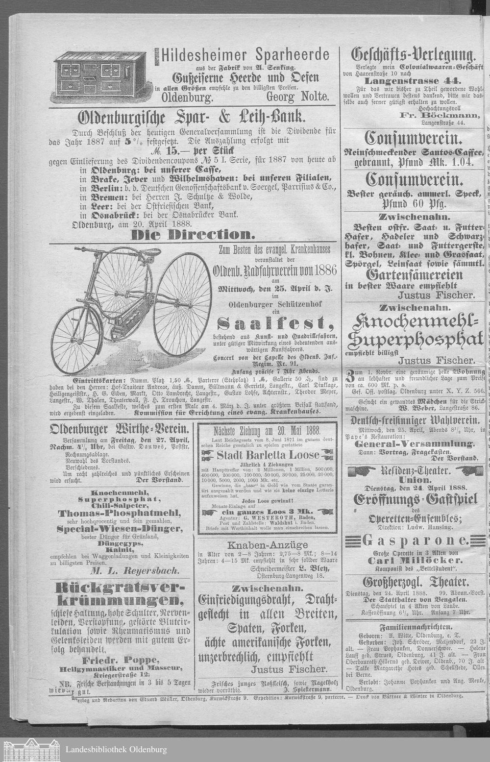 Neue Zeitung für das Großherzogthum Oldenburg. 1887-1890