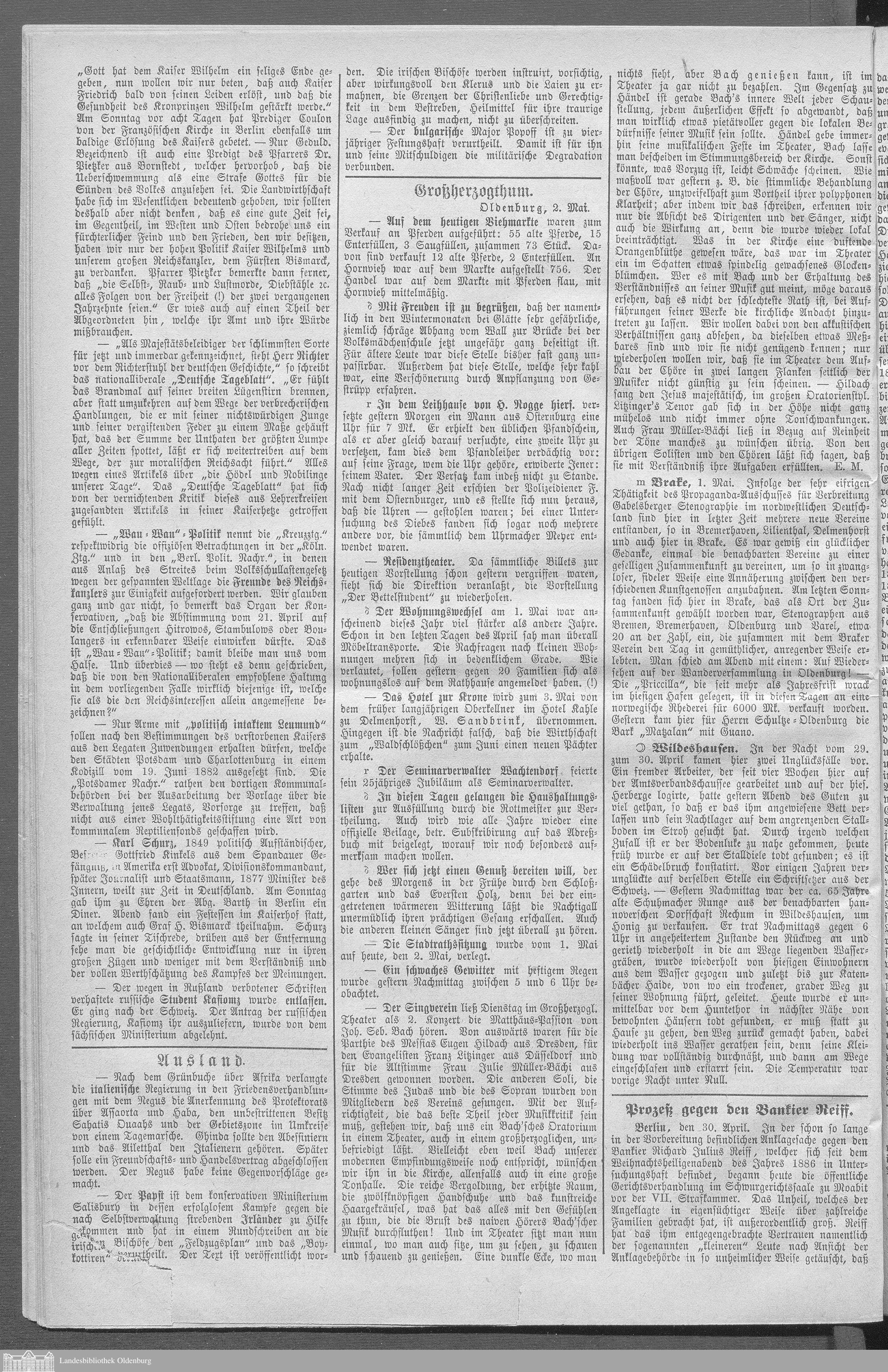 Neue Zeitung für das Großherzogthum Oldenburg. 1887-1890