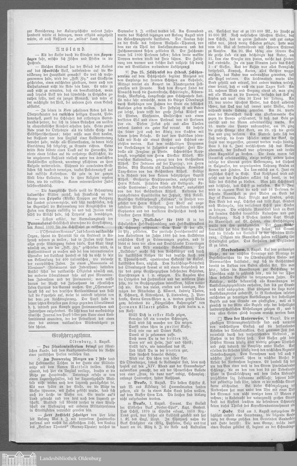 Neue Zeitung für das Großherzogthum Oldenburg. 1887-1890