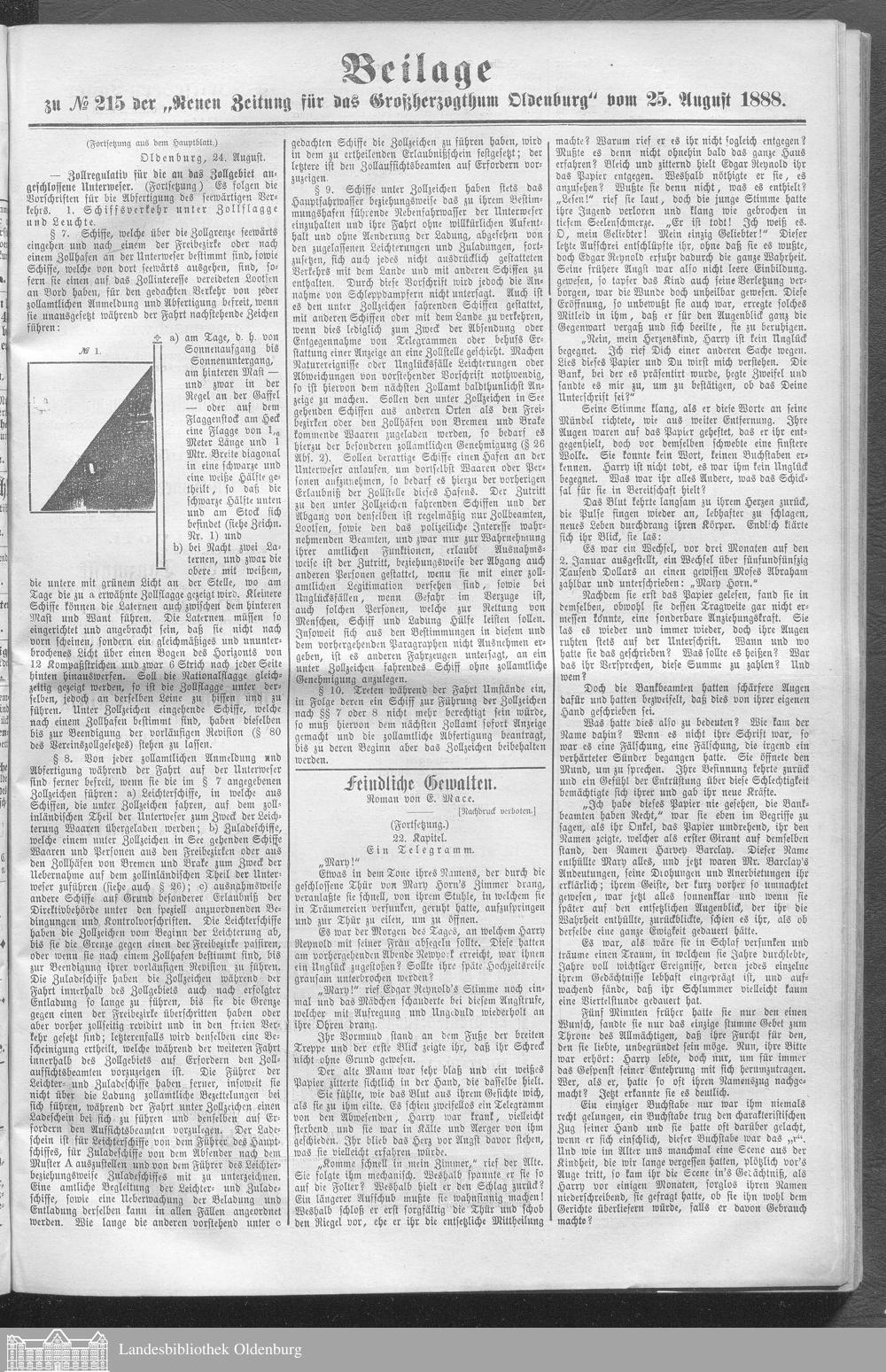 Neue Zeitung für das Großherzogthum Oldenburg. 1887-1890