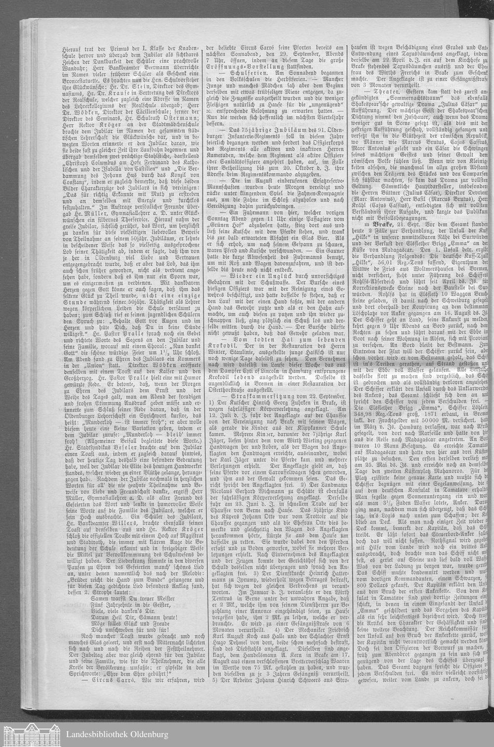 Neue Zeitung für das Großherzogthum Oldenburg. 1887-1890