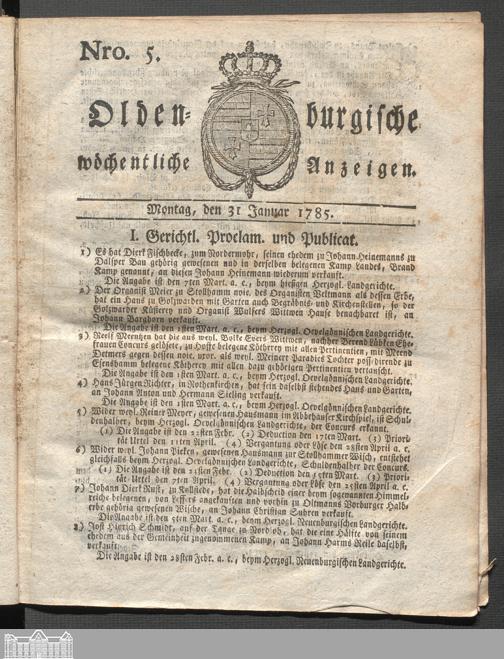 Oldenburgische wöchentliche Anzeigen. 1749-1826