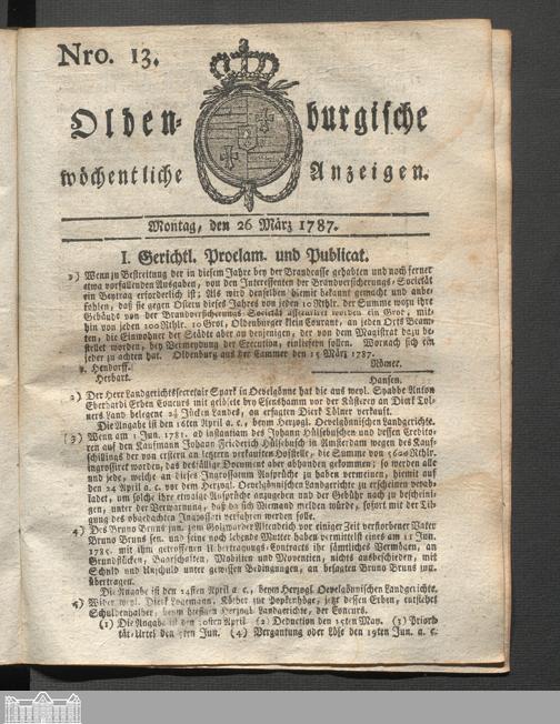 Oldenburgische wöchentliche Anzeigen. 1749-1826