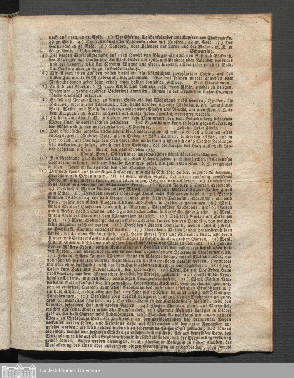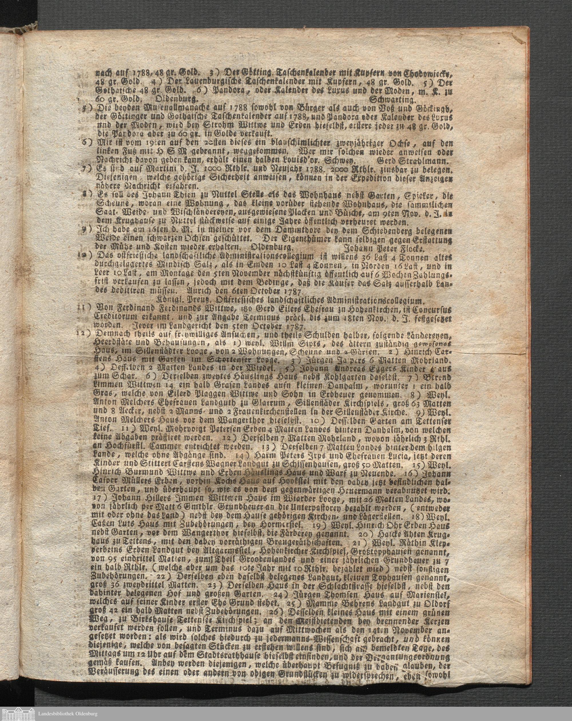 Oldenburgische wöchentliche Anzeigen. 1749-1826