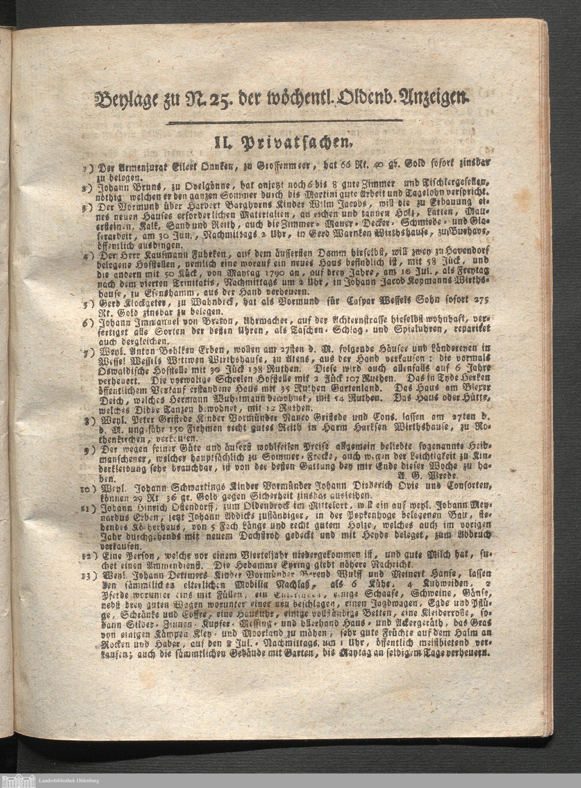 Oldenburgische wöchentliche Anzeigen. 1749-1826