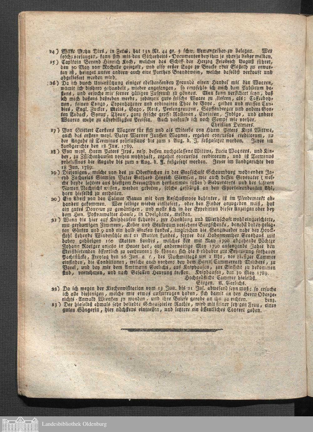 Oldenburgische wöchentliche Anzeigen. 1749-1826
