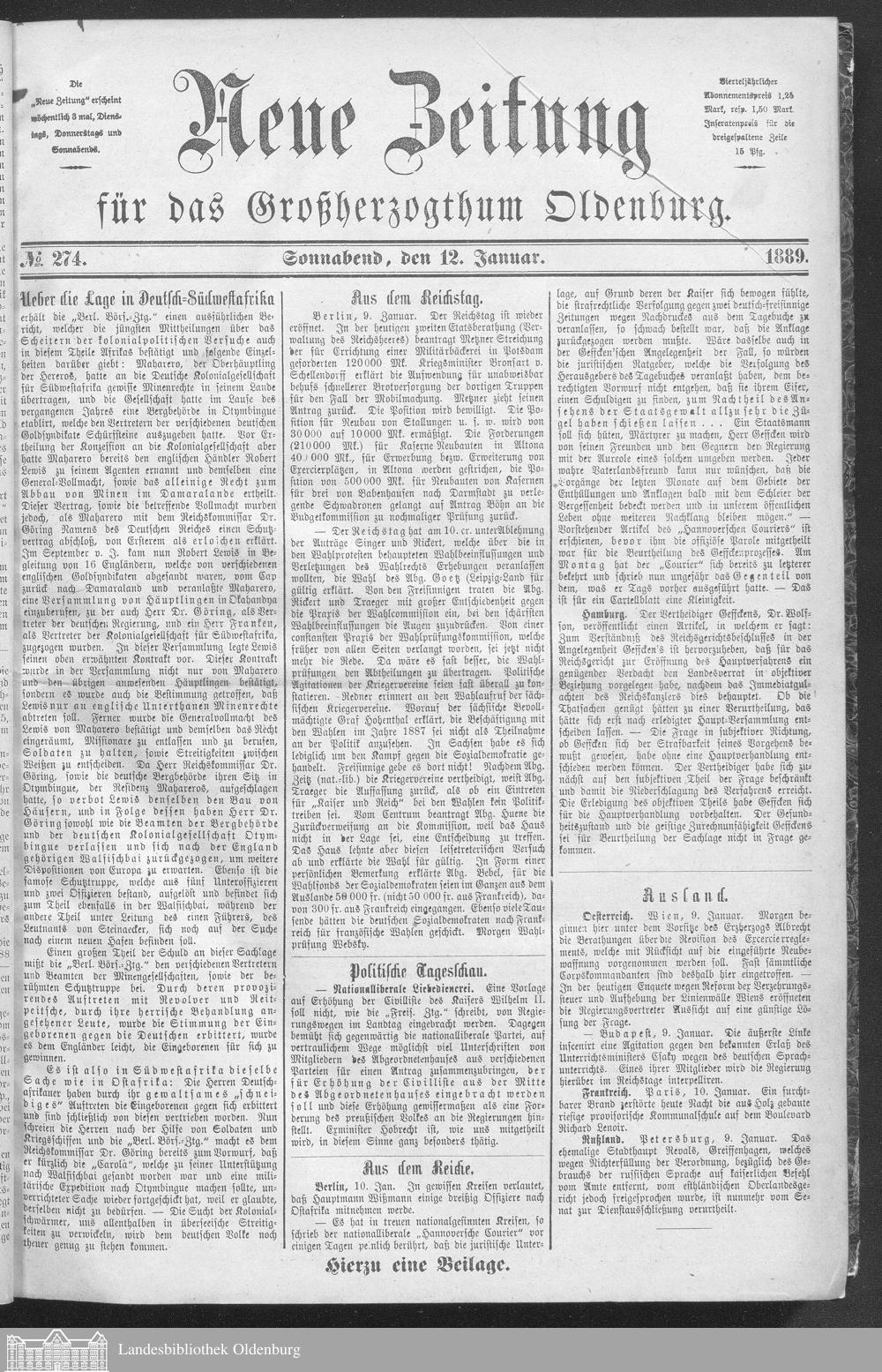 Neue Zeitung für das Großherzogthum Oldenburg. 1887-1890