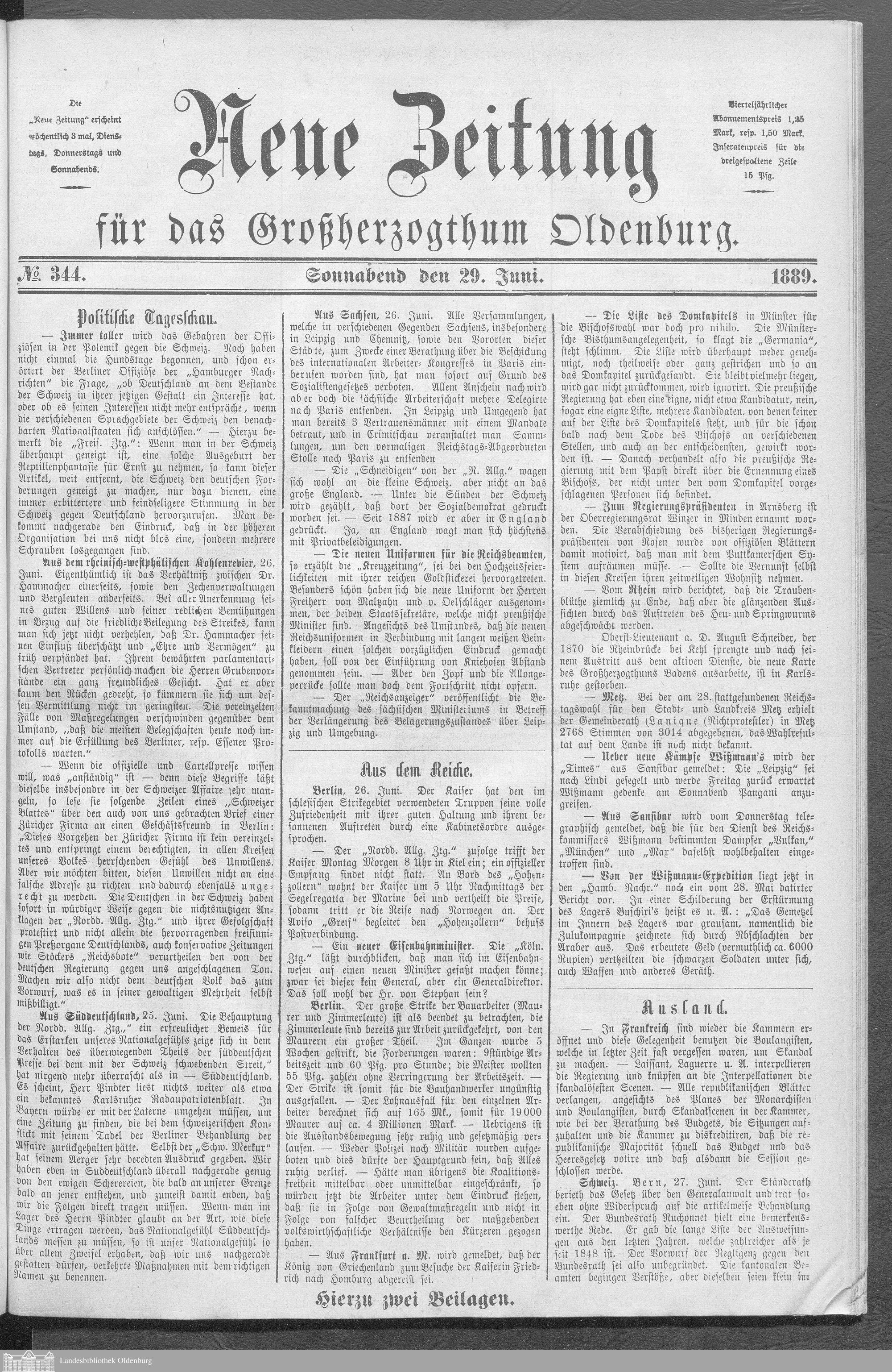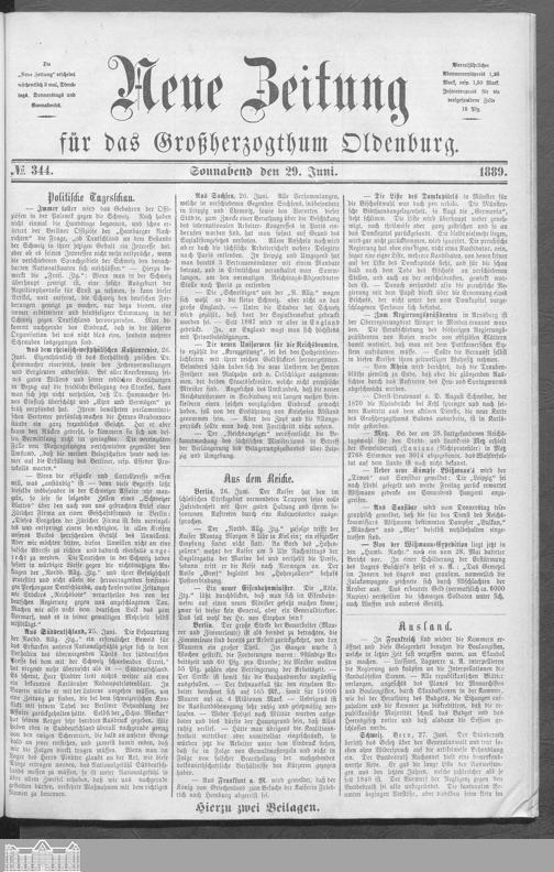 Neue Zeitung für das Großherzogthum Oldenburg. 1887-1890