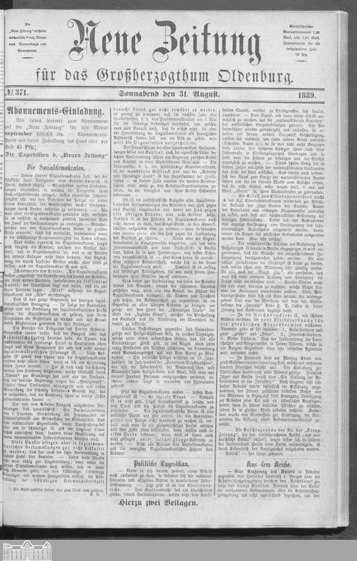 Neue Zeitung für das Großherzogthum Oldenburg....