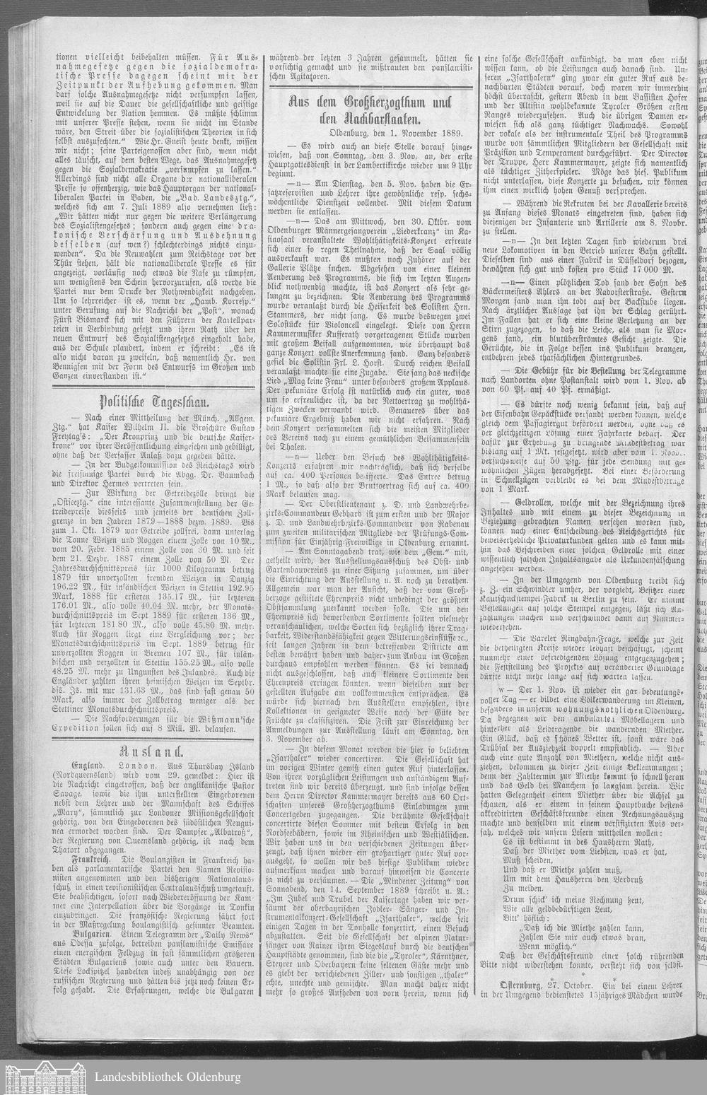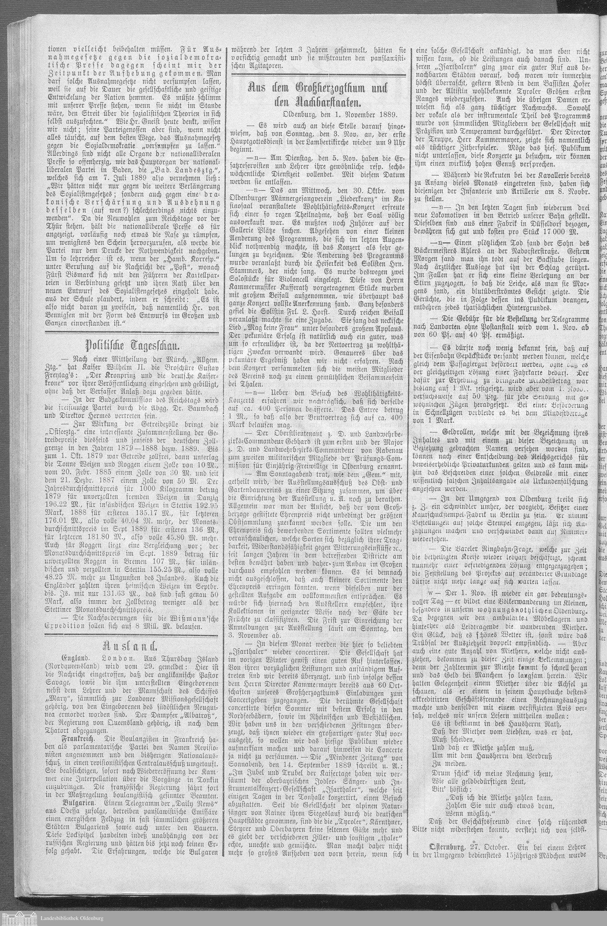 Neue Zeitung für das Großherzogthum Oldenburg. 1887-1890