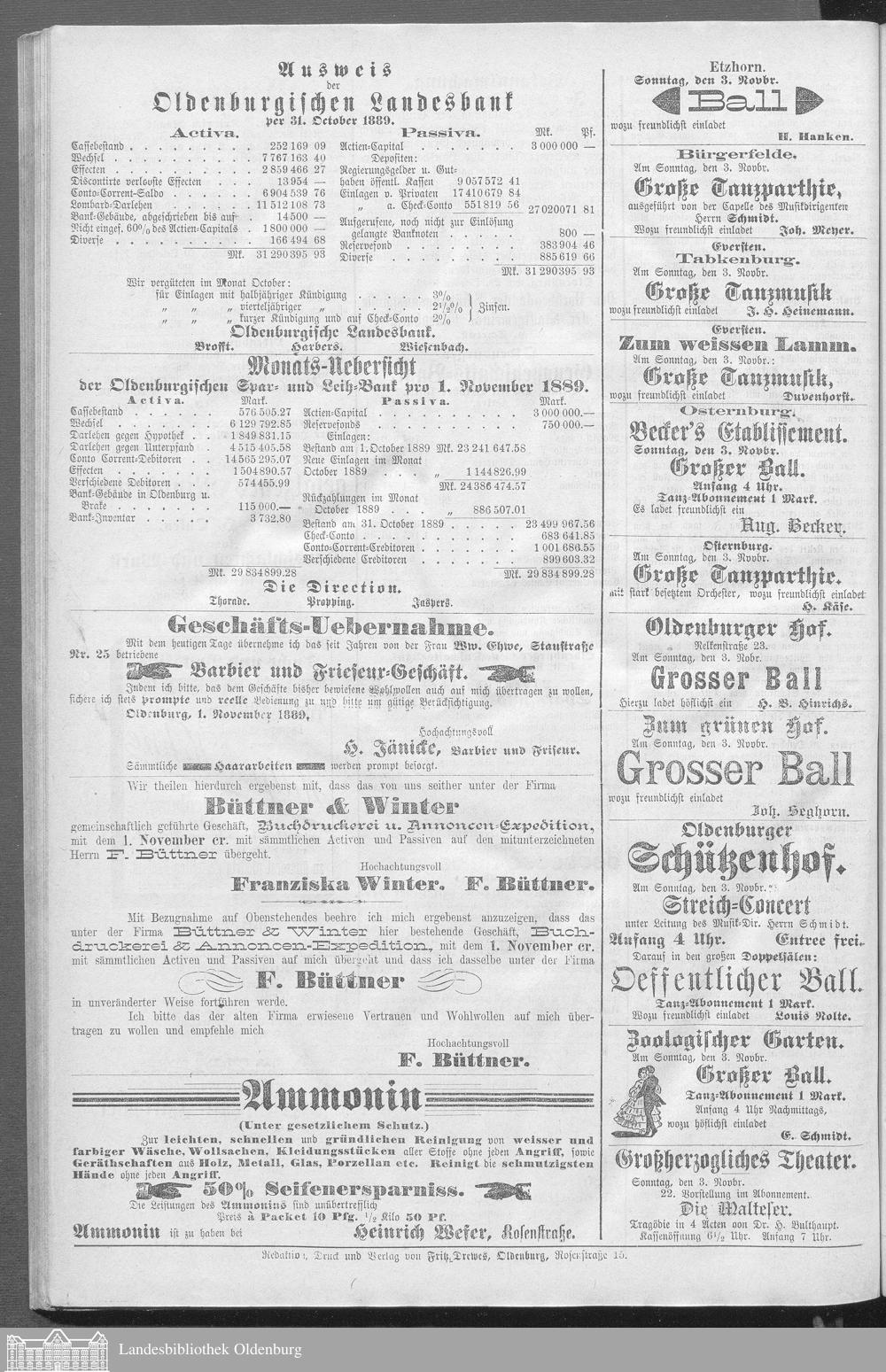 Neue Zeitung für das Großherzogthum Oldenburg. 1887-1890