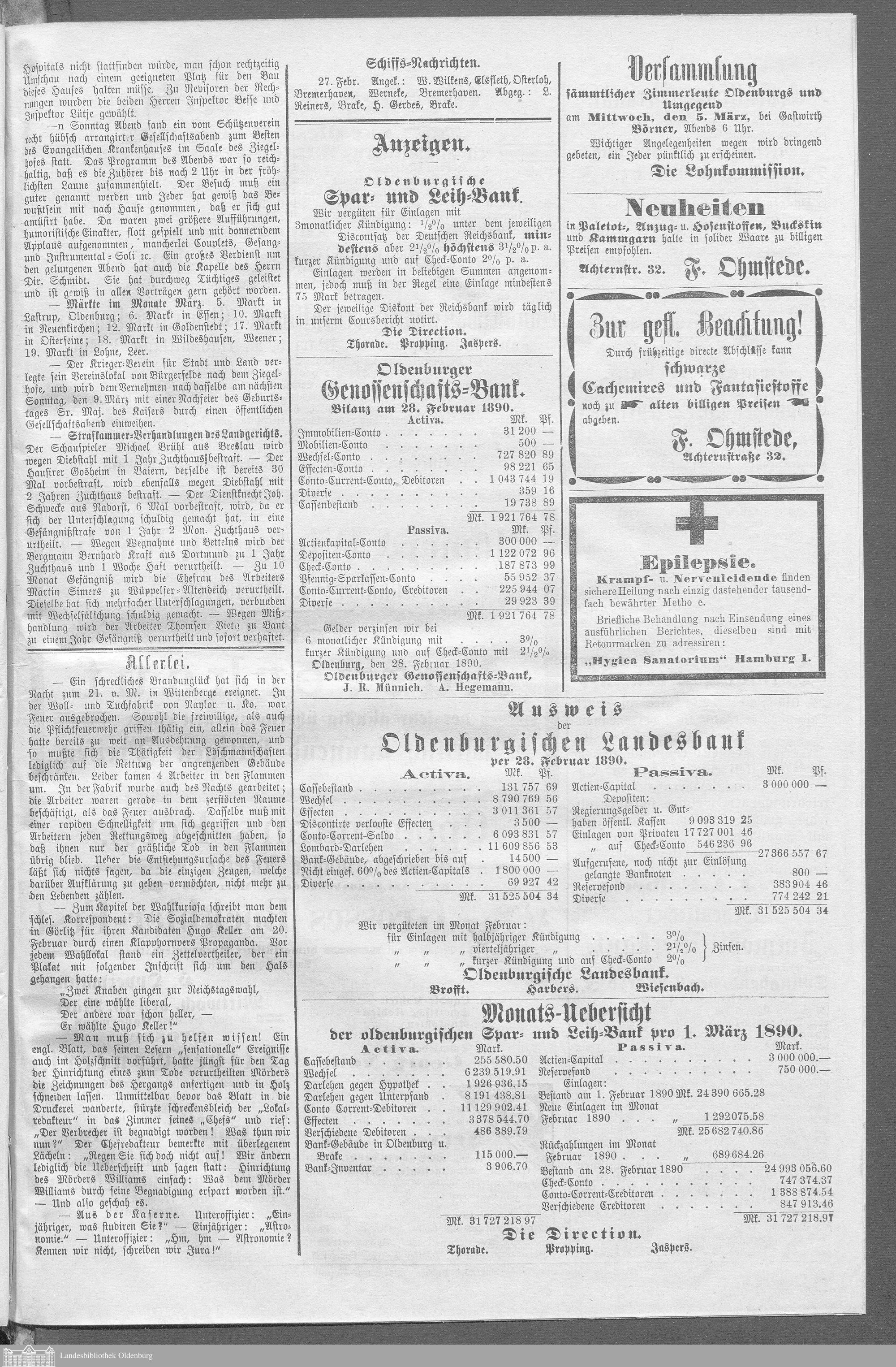 Neue Zeitung für das Großherzogthum Oldenburg. 1887-1890