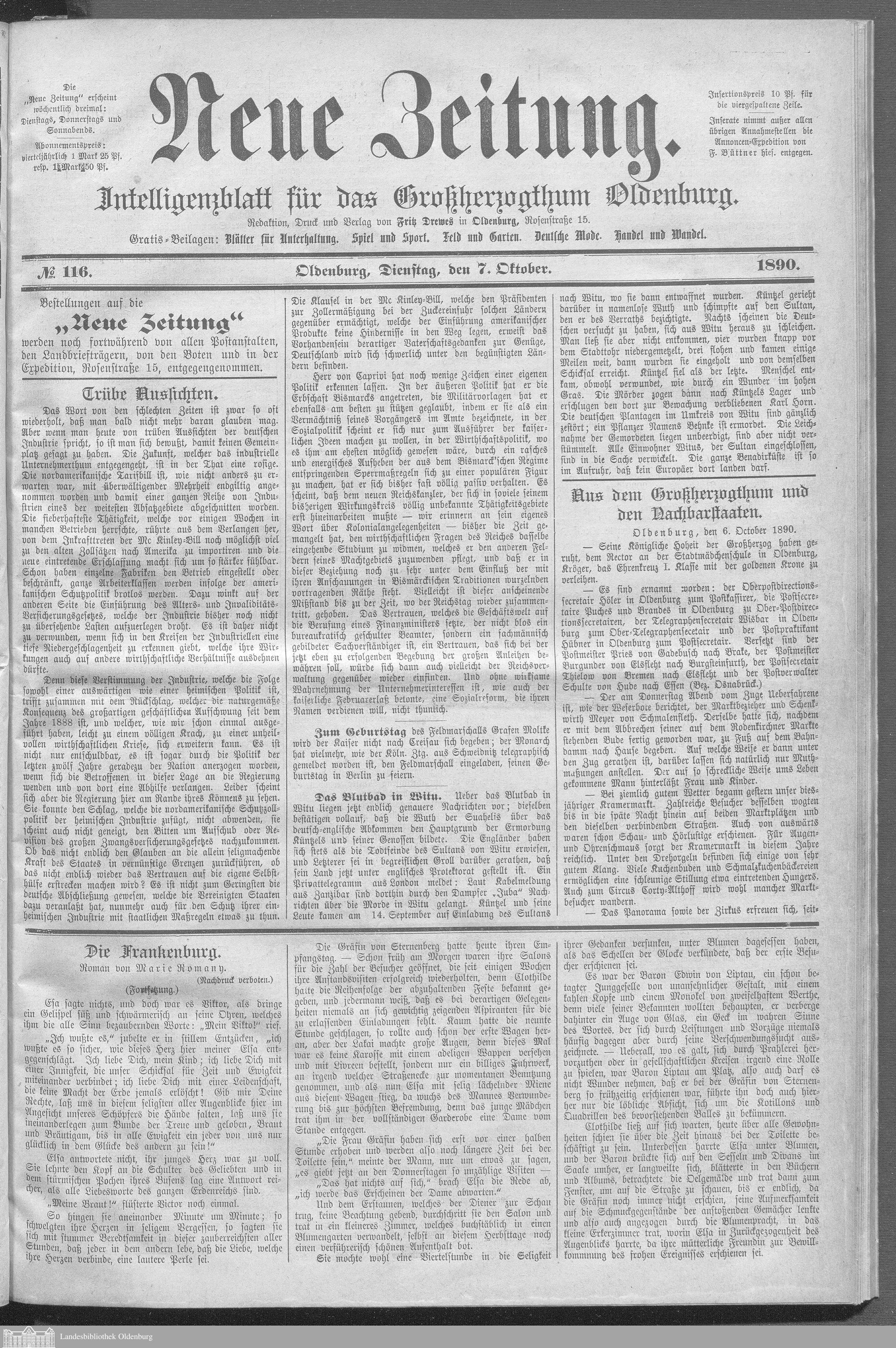 Neue Zeitung. 1890-1891