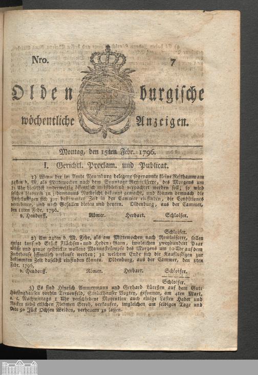 Oldenburgische wöchentliche Anzeigen. 1749-1826