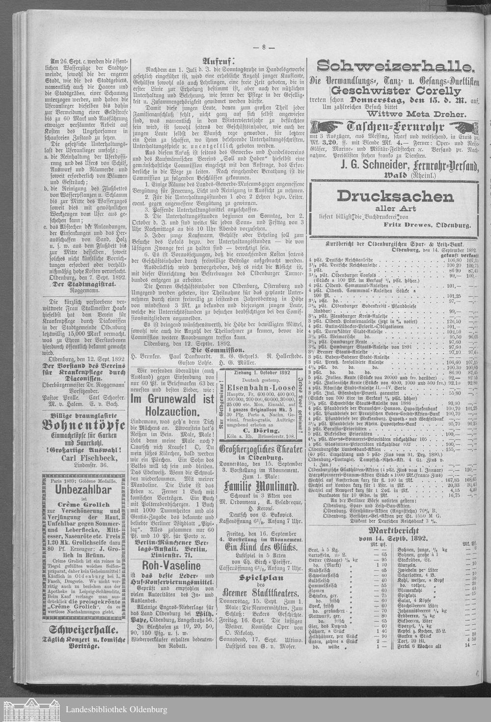 Oldenburger Tageblatt. 1891-1892