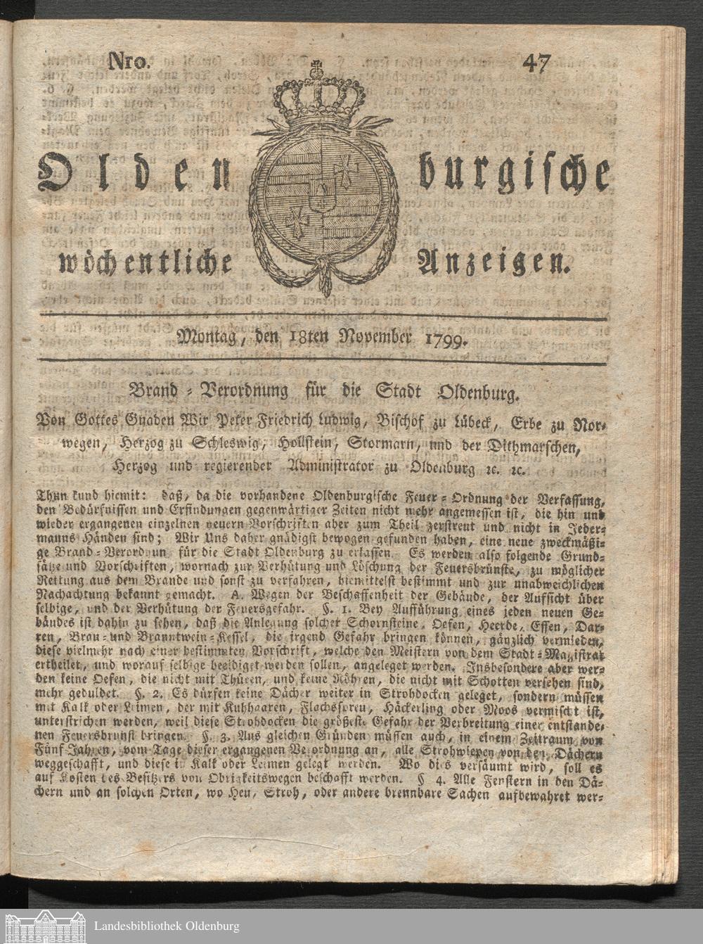 Oldenburgische wöchentliche Anzeigen. 1749-1826