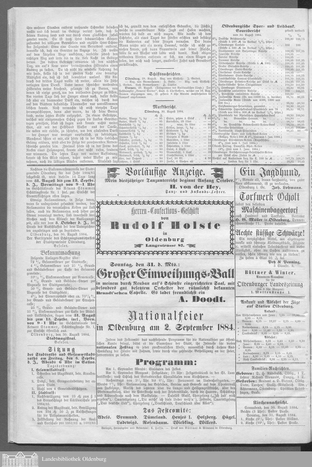 Oldenburger Landeszeitung. 1884-1886
