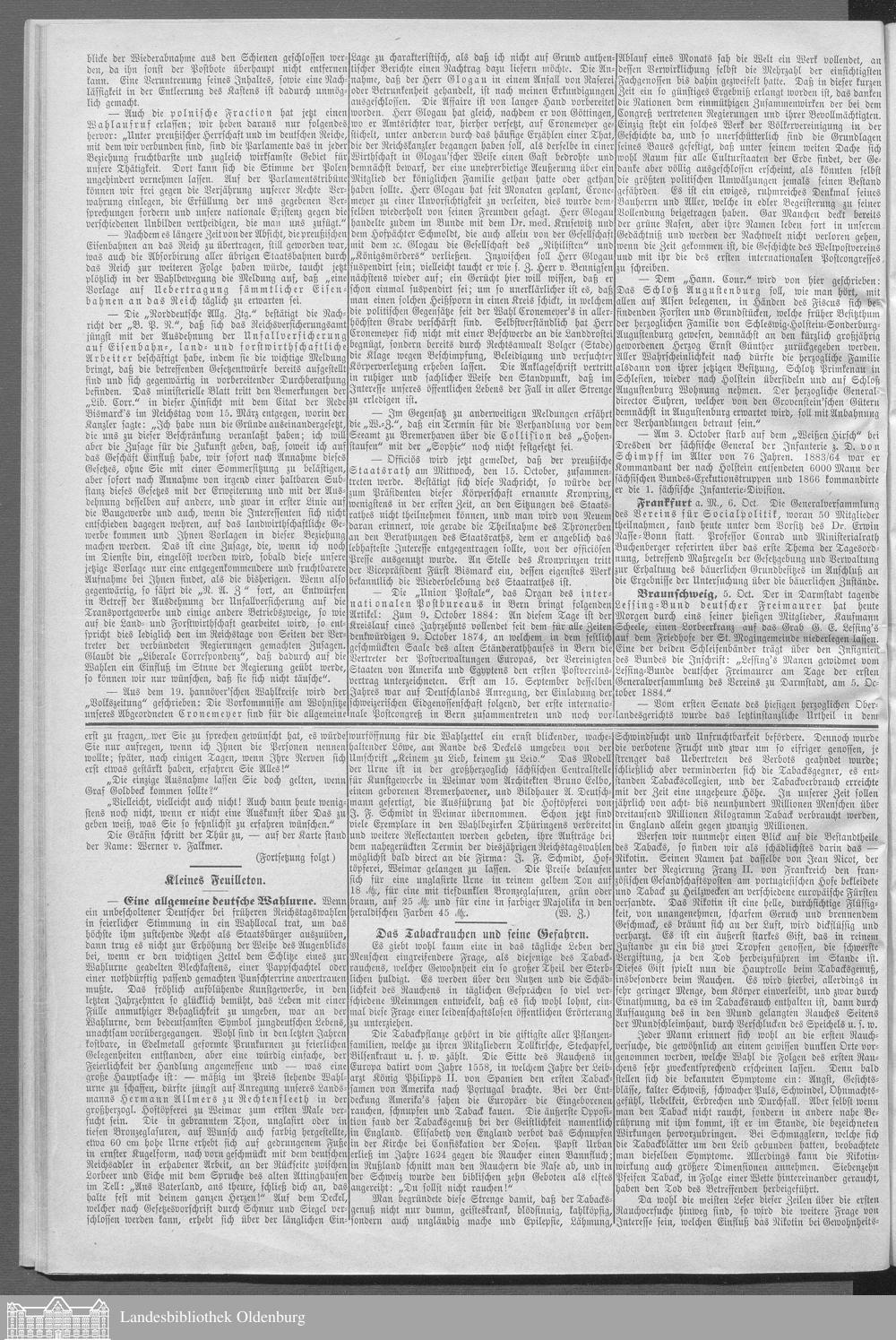 Oldenburger Landeszeitung. 1884-1886