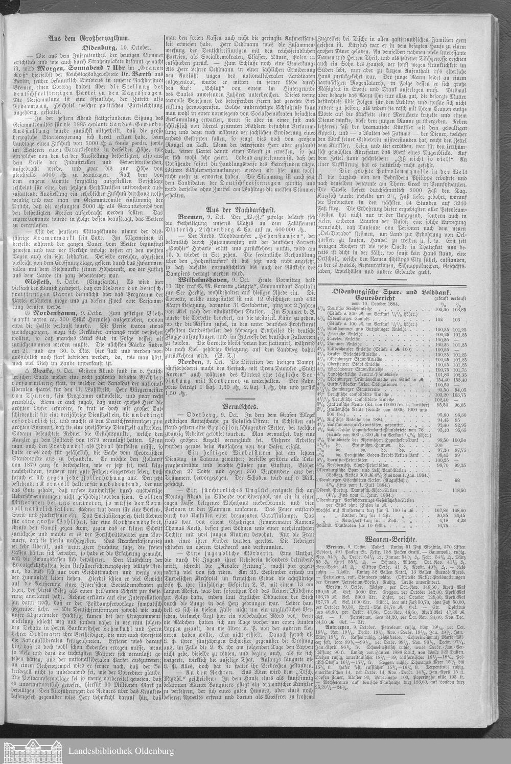 Oldenburger Landeszeitung. 1884-1886