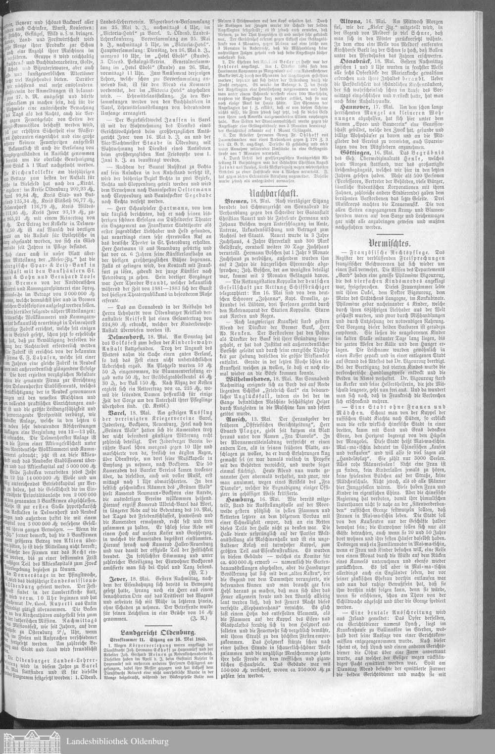 Oldenburger Landeszeitung. 1884-1886