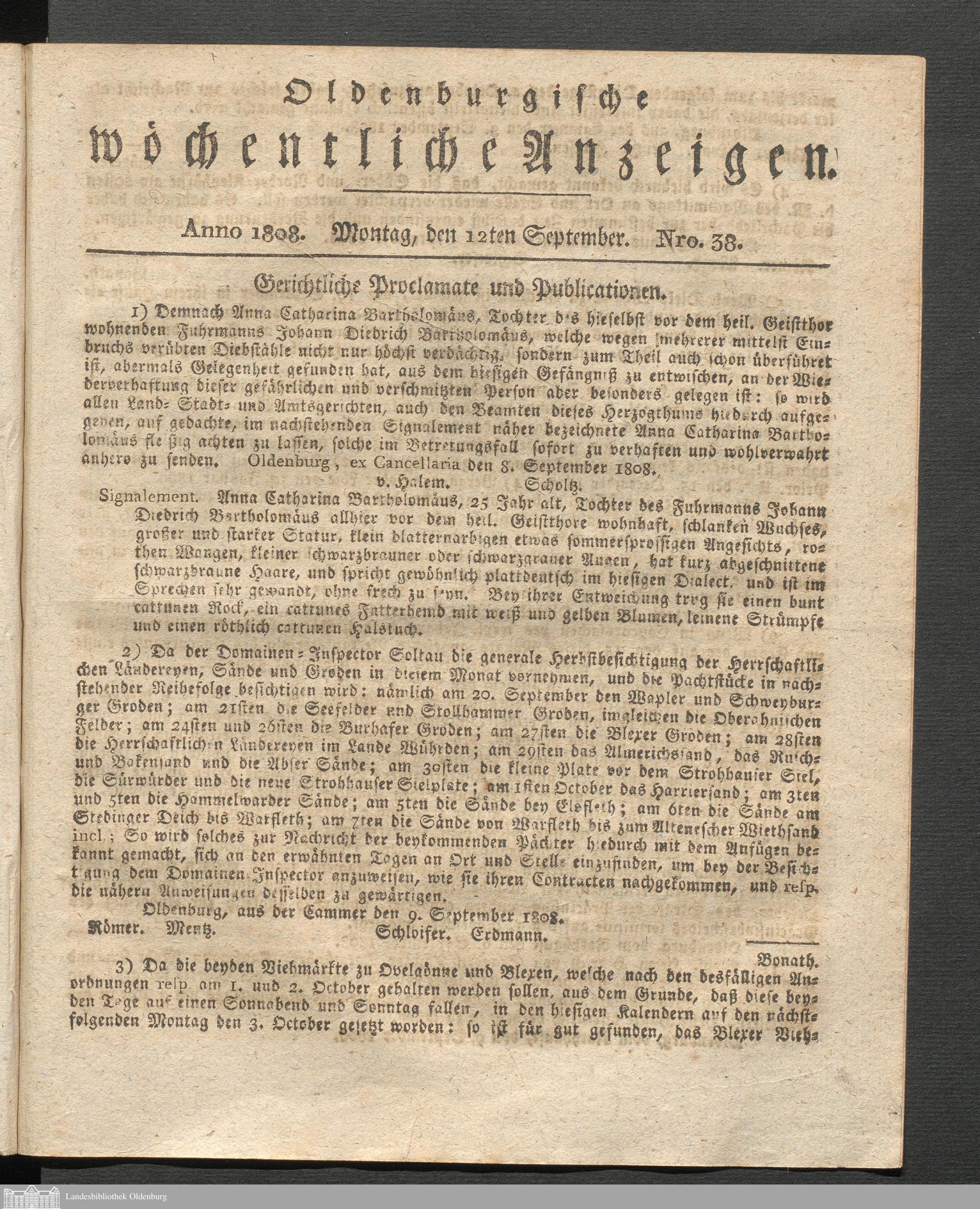 Oldenburgische wöchentliche Anzeigen. 1749-1826