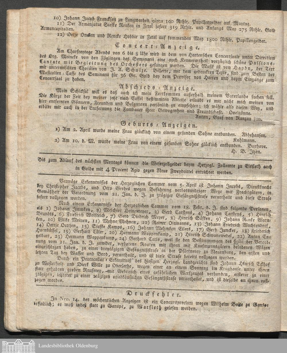 Oldenburgische wöchentliche Anzeigen. 1749-1826