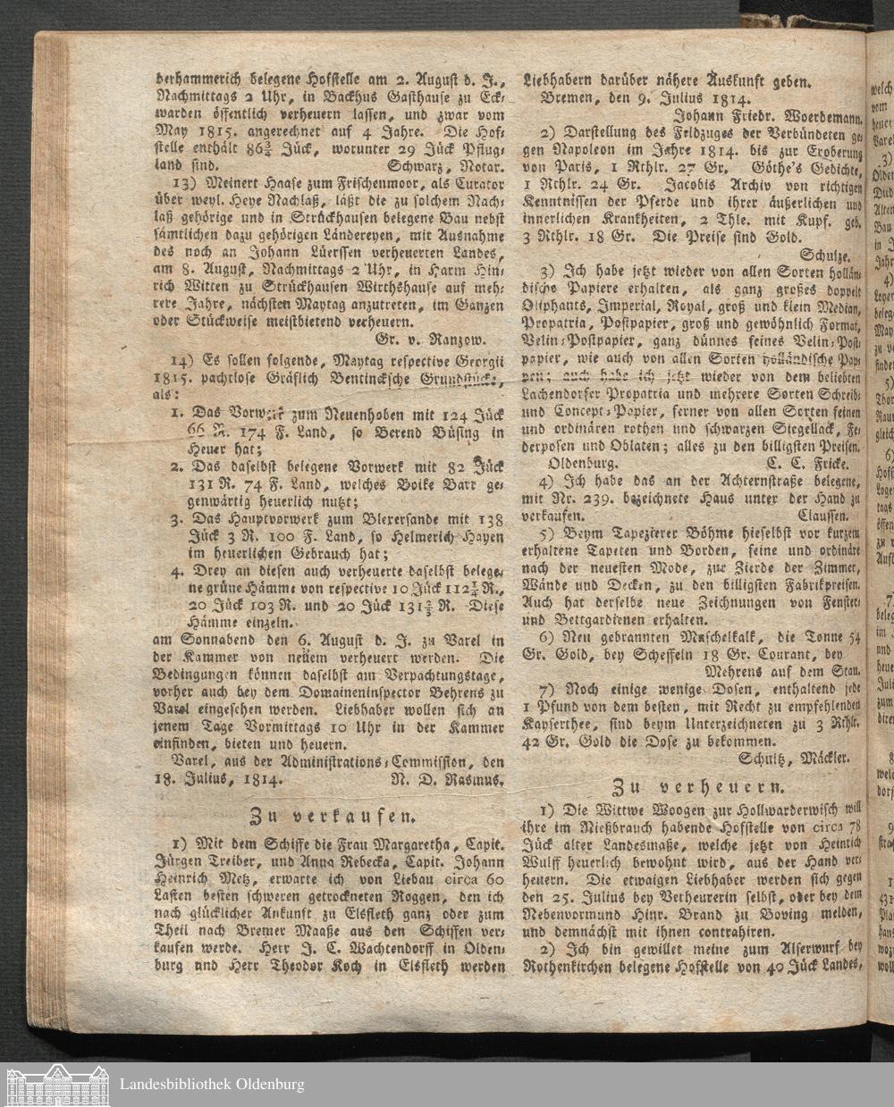 Oldenburgische wöchentliche Anzeigen. 1749-1826