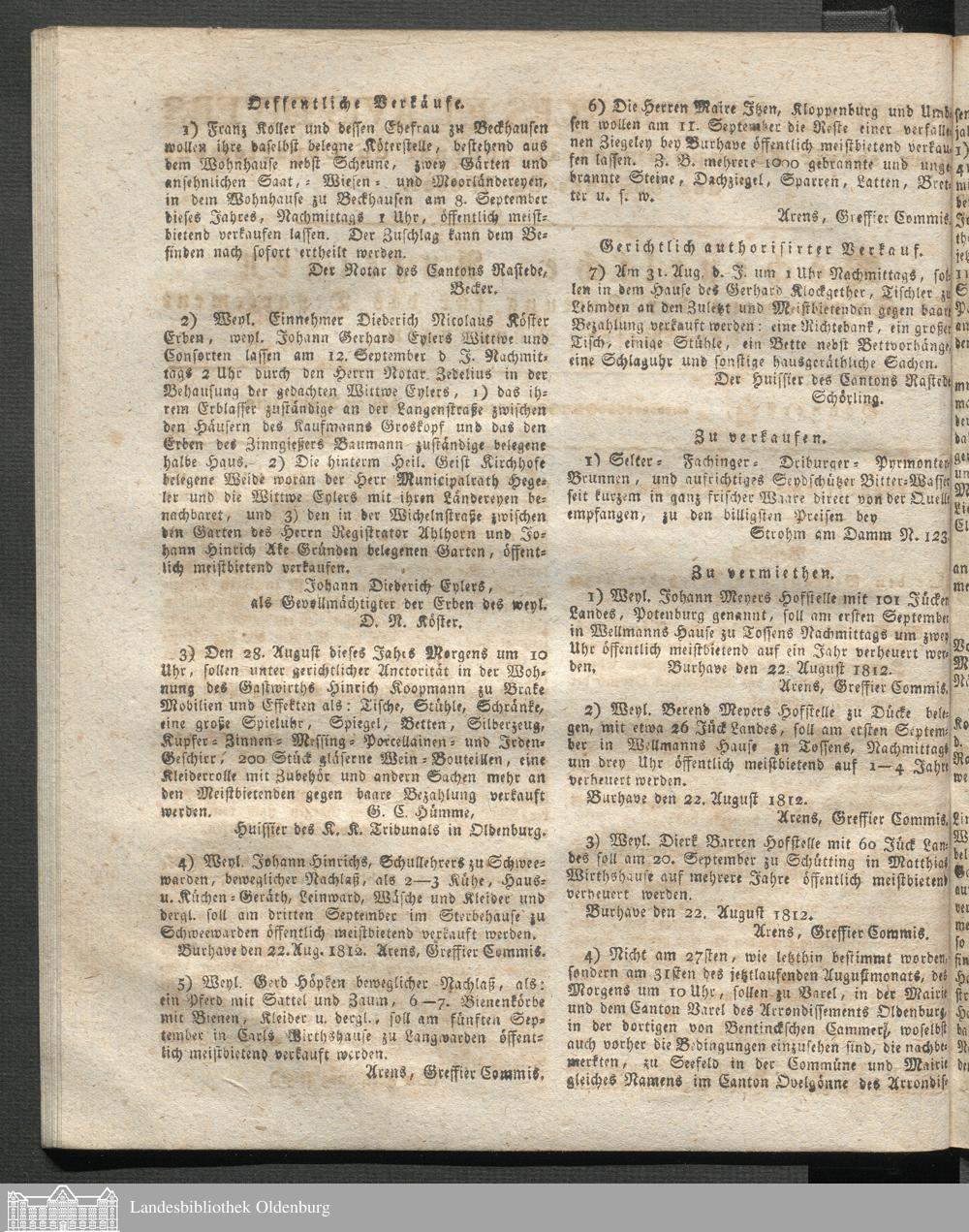 Oldenburgische wöchentliche Anzeigen. 1749-1826