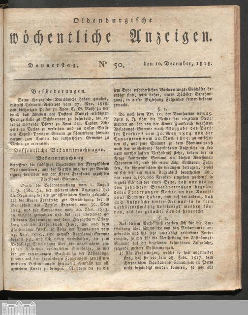 Oldenburgische wöchentliche Anzeigen. 1749-1826