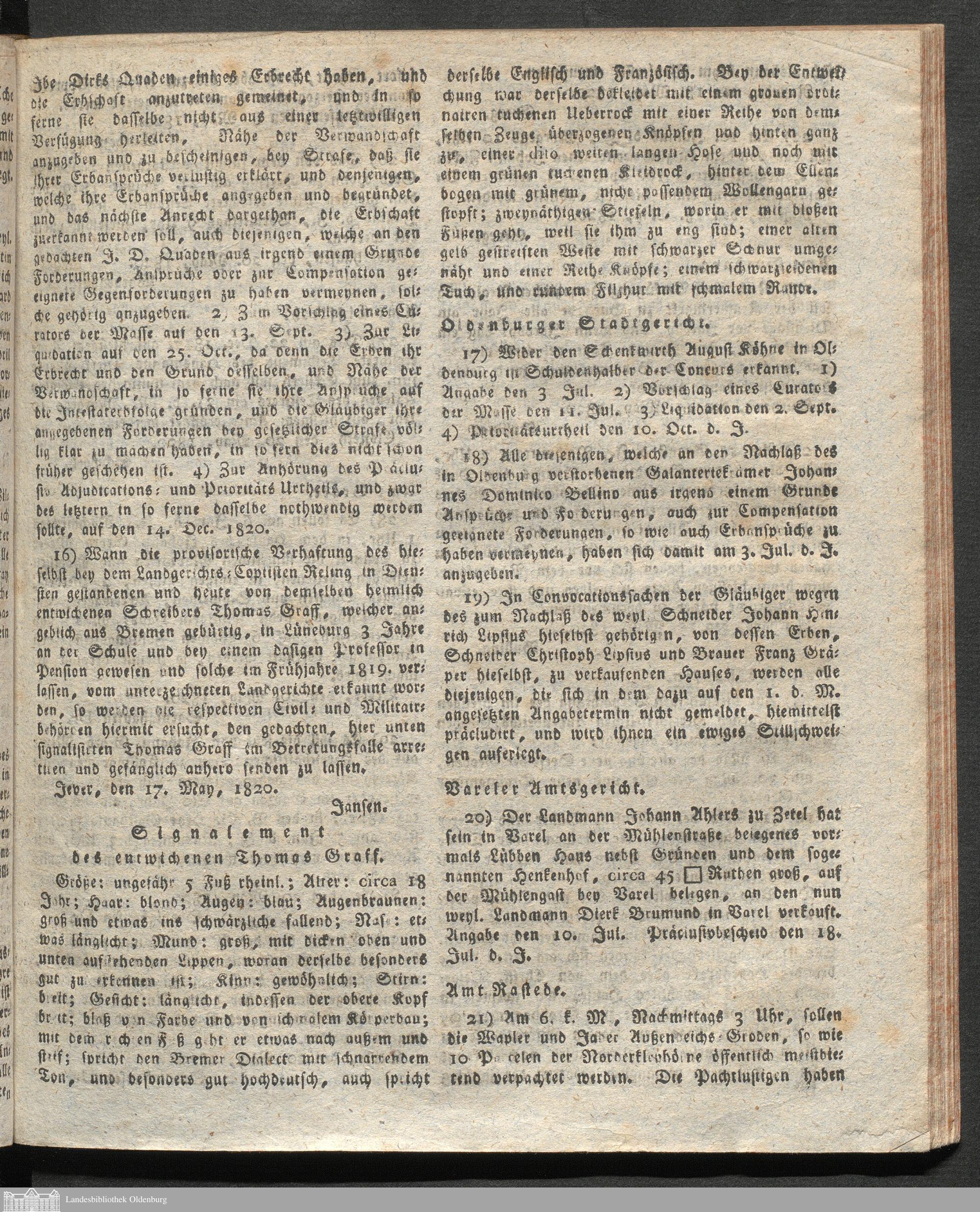 Oldenburgische wöchentliche Anzeigen. 1749-1826