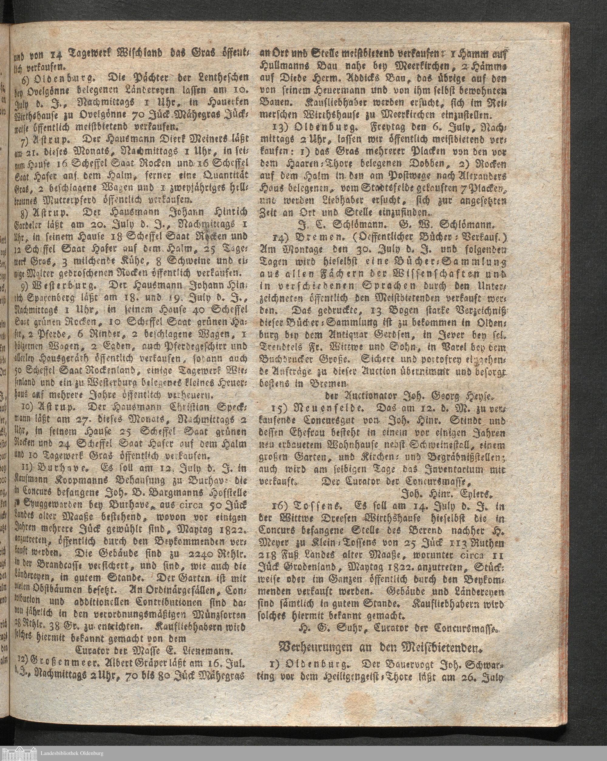 Oldenburgische wöchentliche Anzeigen. 1749-1826