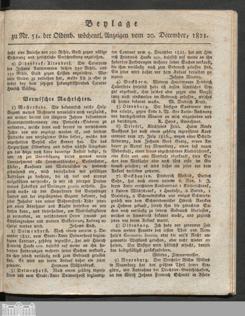 Oldenburgische wöchentliche Anzeigen. 1749-1826