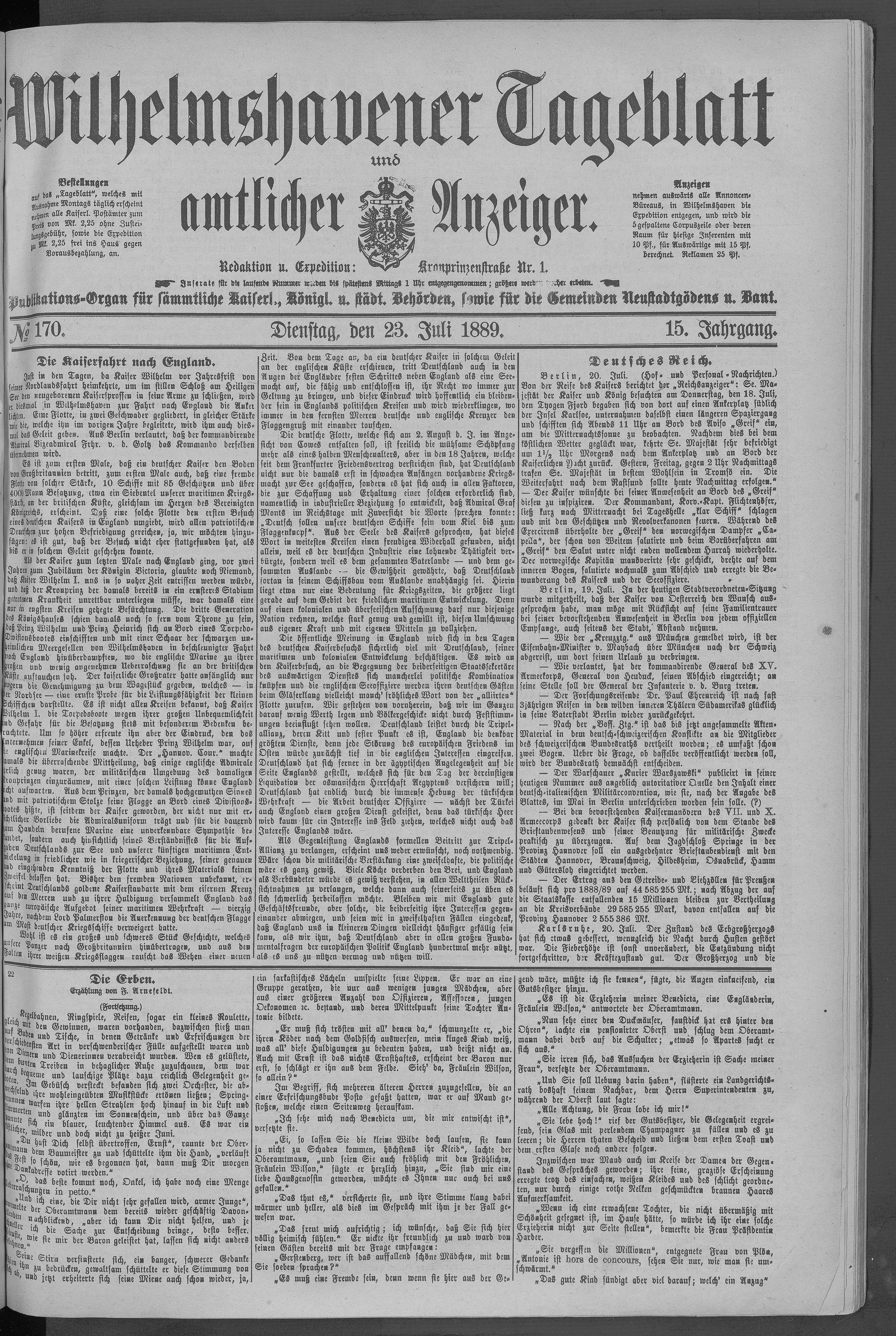 Wilhelmshavener Tageblatt und amtlicher Anzeiger. 1881-1909