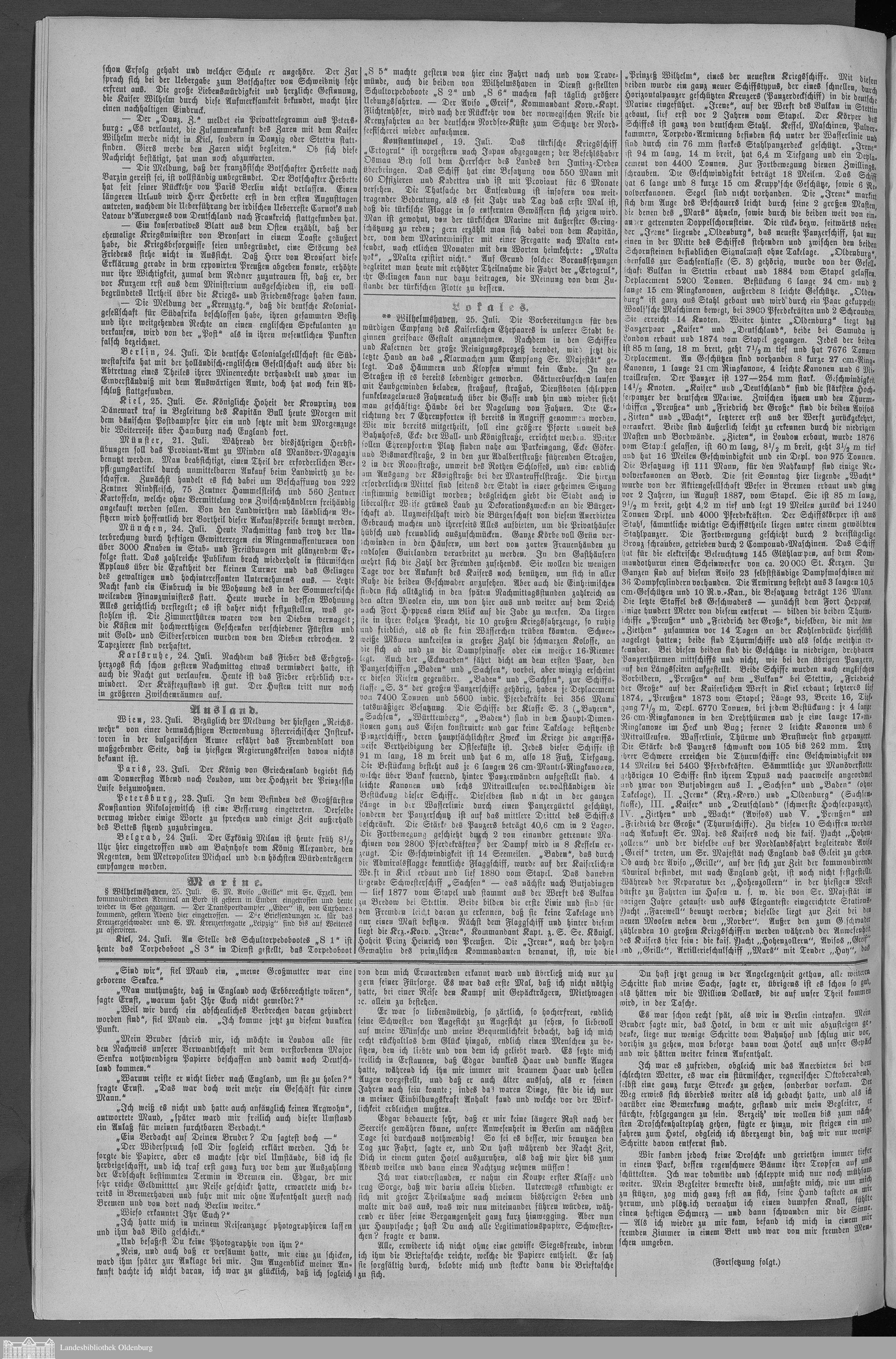 Wilhelmshavener Tageblatt und amtlicher Anzeiger. 1881-1909