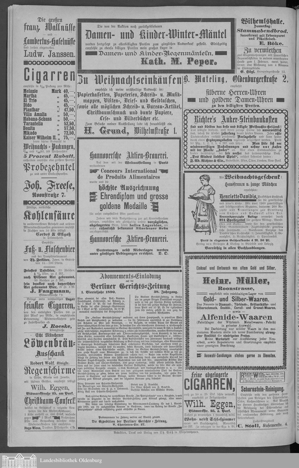 Wilhelmshavener Tageblatt und amtlicher Anzeiger. 1881-1909
